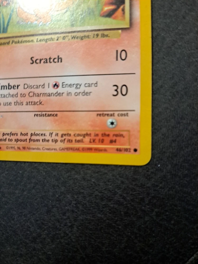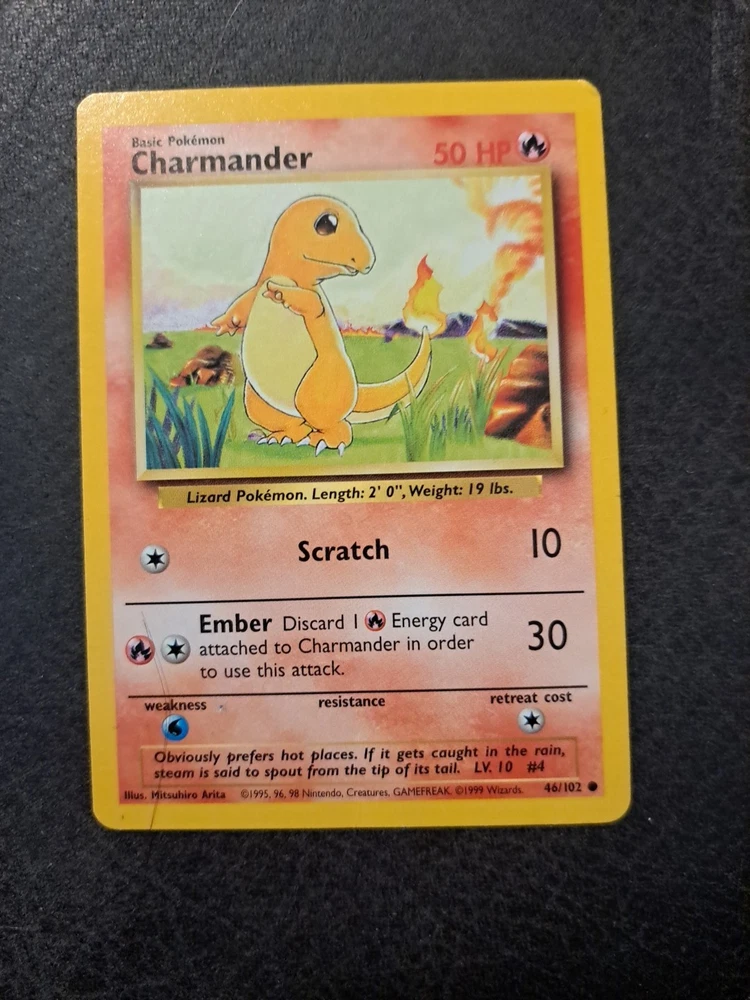 Super Rare Charmander Pokemon Card 1995 46/102 Scratch