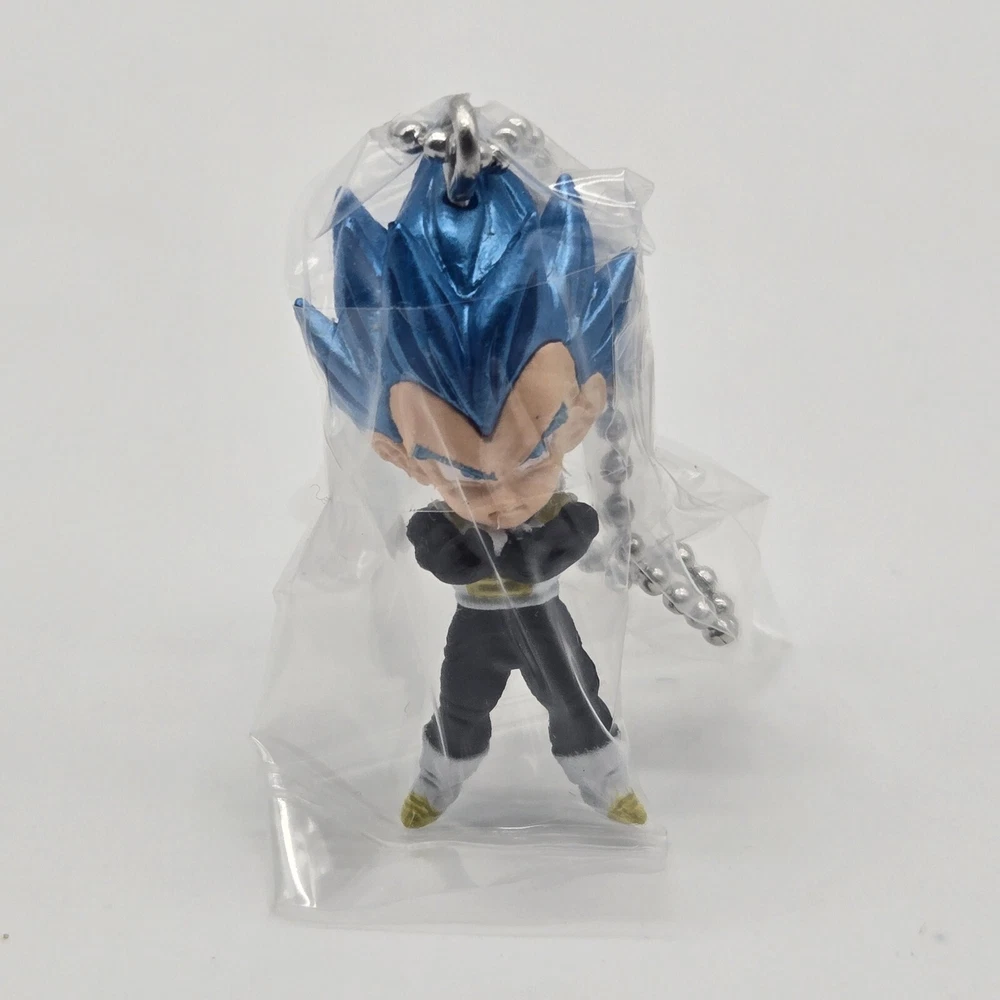 This limited edition Dragon Ball UDM Figure Keychain Toy features the iconic character Vegeta in his Super Saiyan Blue form. Made of high-quality PVC material, this keychain is a must-have for any Dragon Ball fan and collector. With vibrant blue coloring and intricate details, this Bandai-produced keychain is an ideal accessory for all occasions. It was manufactured in Japan and is part of the Anime & Manga theme. It is not personalized, signed, or intended for any specific convention or event. Get your hands on this unique Dragon Ball keychain now!