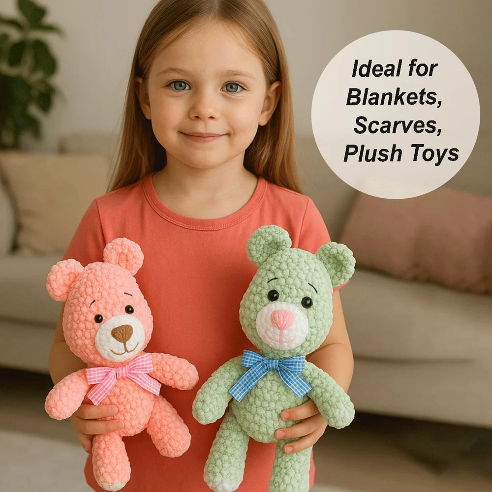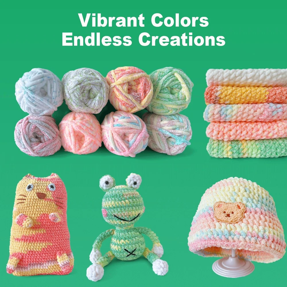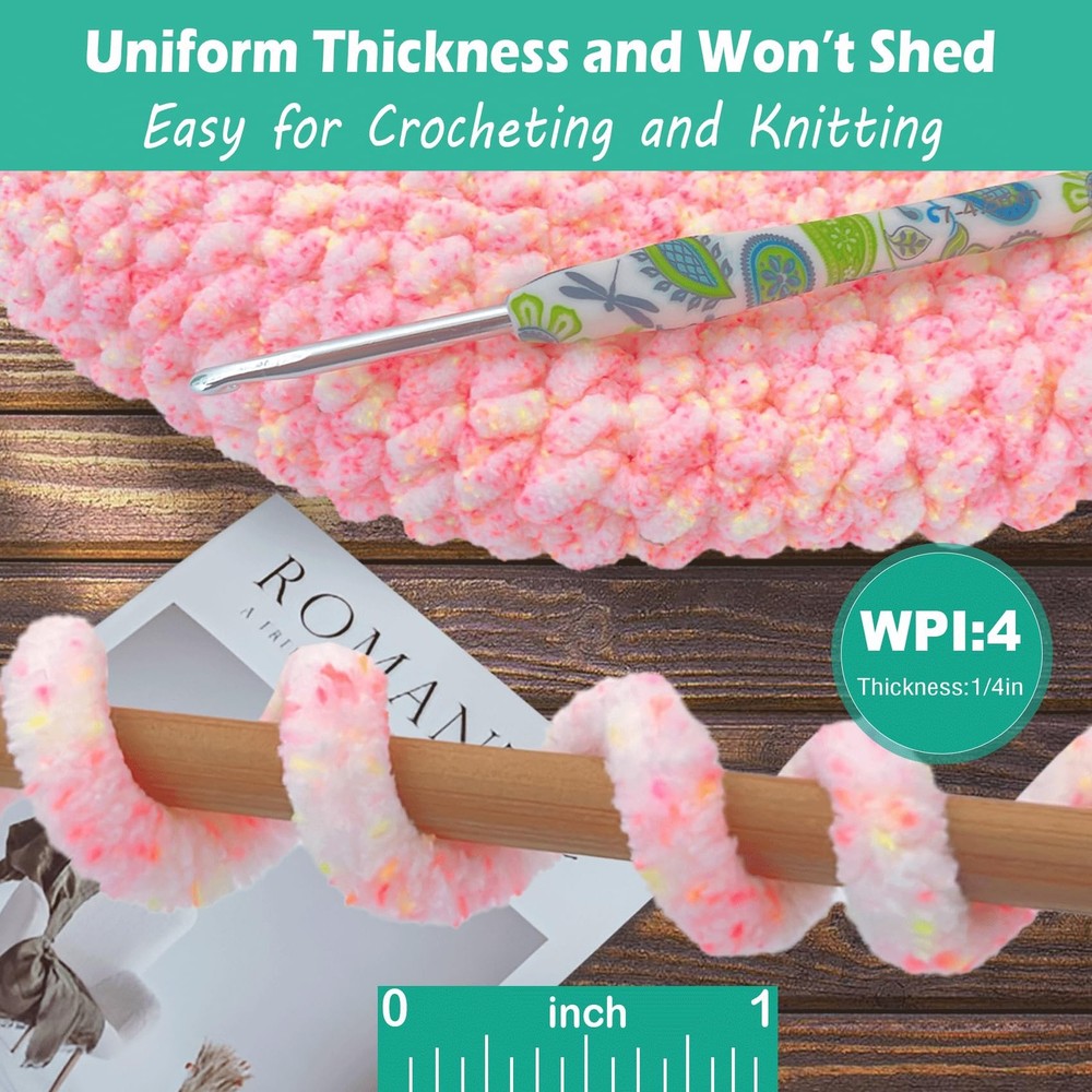 Introducing Bulky #5 Chenille Yarn for Crocheting & Knitting Each skein is classified as Bulky #5, providing just the right thickness for your knitting and crocheting projects. It's soft, durable, and incredibly easy to work with. Whether you're a beginner or an experienced crafter, our yarn offers a smooth stitching experience without the frustration of yarn breakage or shedding. Ultra-Soft & Easy to Use Our chenille yarn is exceptionally soft to the touch, making it a pleasure to knit or crochet with. Designed for smooth handling, it’s sturdy enough to resist breakage and stays intact through all your creative endeavors, ensuring your projects remain flawless and tangle-free. Perfect for Various Crafting Projects From cozy blankets and cushions to scarves, hats, and more, this versatile yarn is perfect for all your DIY projects. Its durable, bulky nature makes it ideal for home décor, macramé, weaving, and other creative applications, no matter where your inspiration takes you. Designed for All Ages This yarn is a great choice for crafters of any age, whether you're a child, teen, adult, or senior. Its user-friendly nature allows for easy arm knitting, large hand-knitting projects, or intricate big stitch designs. The softness and thickness make it a favorite for bold, oversized creations. Unique Color Customization What truly sets our yarn apart is the ability to customize its colors. Our exclusive hand-dyed multicolor variations offer one-of-a-kind tones, with stunning ombre and variegated effects. You won’t find these distinctive color blends anywhere else, making your projects stand out with unparalleled style. Easy Care Instructions Machine washable and easy to care for: 1. Hand wash or machine wash on a gentle cycle with cold water (max 30°C/86°F). 2. Tumble dry on low heat or air dry flat. 3. Do not bleach, iron, or dry clean. 【Bulky #5 Chenille Yarn for Crocheting & Knitting】chenille yarn is made of 100% premium polyester. 3.5oz/93yard of each skein,it providing just the right thickness for your knitting and crocheting projects. It's soft, durable, and incredibly easy to work with. Whether you're a beginner or an experienced crafter, our yarn offers a smooth stitching experience without the frustration of yarn breakage or shedding. 【Ultra-Soft & Easy to Use】Unlike the traditional chenille and velvet yarn, This Ultra soft chenille yarn offers unmatched softness and durabiity for lasting projects,and also our chenille doesn’t shed or fall apart, It is easy to crochet with and glides easily through your fingers and hook. 【Unique Color Customization】What truly sets our yarn apart is the ability to customize its colors. Our exclusive multicolor variations offer one-of-a-kind tones, with stunning ombre and variegated effects. You won’t find these distinctive color blends anywhere else, making your projects stand out with unparalleled style. 【Perfect for Various Crafting Projects】The fluffy Chenille feels soft and warm against your skin and is great for making baby blankets along with an assortment of other projects like amigurumi,scarves, hats, and more, this versatile yarn is perfect for all your DIY projects. Its durable, bulky nature makes it ideal for home décor, macramé, weaving, and other creative applications. 【Crochet Gauge】The 4" x 4" crocheting gauge is 11 sc and 12 rows with a 5.0 mm (U.S.6) hook. if doing amigurumi, recommend to use a 4.5,mm hook; if doing blankets/hats/scarves etc need a 5.5-6.0mm hook. 【Knitting Gauge】Use with 4.5-6.0mm (US.7-10) Knitting Needle, the 4" x 4" knitting gauge is 12 sc and 13 rows with a 5.0 mm (U.S.8) needle. 【Easy Care Instructions】Machine washable and easy to care for: 1. Hand wash or machine wash on a gentle cycle with cold water (max 30°C/86°F). 2. Tumble dry on low heat or air dry flat. 3. Do not bleach, iron, or dry clean.