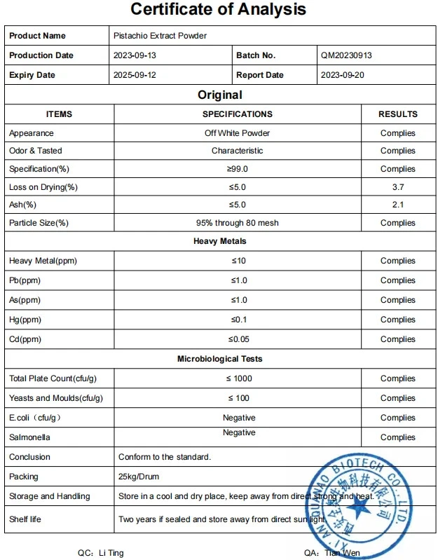 Superfood pistachio nut extract pistachio extract powder Product Name pistachio extract Apperance Off white Powder Specification 10:1;99%