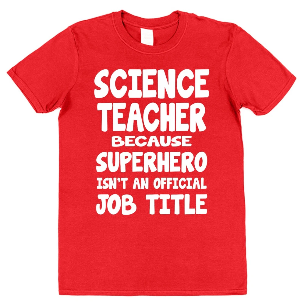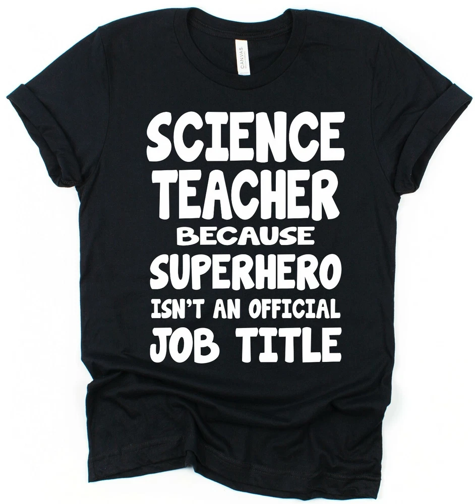 Science Teacher T-Shirt Superhero Funny Teacher Gift Idea Unisex Present for Teacher Loose and fitted styles available. This T-shirt is a great present idea for your child's teacher at Christmas or the end of the school year, end of term or as a way to say 'thank you' because they're the best science teacher in the world! Choose from our ladies fitted style with shaped side seams for a feminine fit or our classic regular fit unisex T-shirt for extra comfort. Both styles are 100% cotton so are comfortable and breathable. They've been made to last with re-enforced seams to eliminate separation and double stitched hem and sleeves for durability. At Click my Clobber, we're specialists in high quality T-shirt printing. We give you a comfortable product that will last and last. Take a look at our feedback to see how satisfied our customers are. Check out our eBay store for many more teacher present ideas. We have a huge range of T-shirt designs, gift buying has never been easier! Important Size Information: Sizes S to 3XL are Men's / Unisex T-Shirts Small - Width 46cm, Length 71cm (To fit 34''-36'') Medium - Width 51cm, Length 74cm (To fit 38''-40'') Large - Width 56cm, Length 76cm (To fit 42''-44'') XL - Width 61cm, Length 79cm (To fit 46''-48'') 2XL - Width 66cm, Length 81cm (To fit 50''-52'') 3XL - Width 71cm, Length 84cm (To fit 54''-56'') Sizes 8 to 18 are Women's Fitted T-Shirts with shaped side seams for a feminine fit. 8 (XS) - Width 40cm, Length 61cm 10 (S) - Width 42cm, Length 63cm 12 (M) - Width 46cm, Length 64cm 14 (L) - Width 48cm, Length 65cm 16 (XL) - Width 51cm, Length 66cm 18 (2XL) - Width 53cm, Length 68cm Width is measured across garment 1cm down from armholes Length is measured from highest point of shoulder to bottom edge of garment. Please feel free to contact us if you have any questions or if you can't find what you're looking for. We always do our best to help.