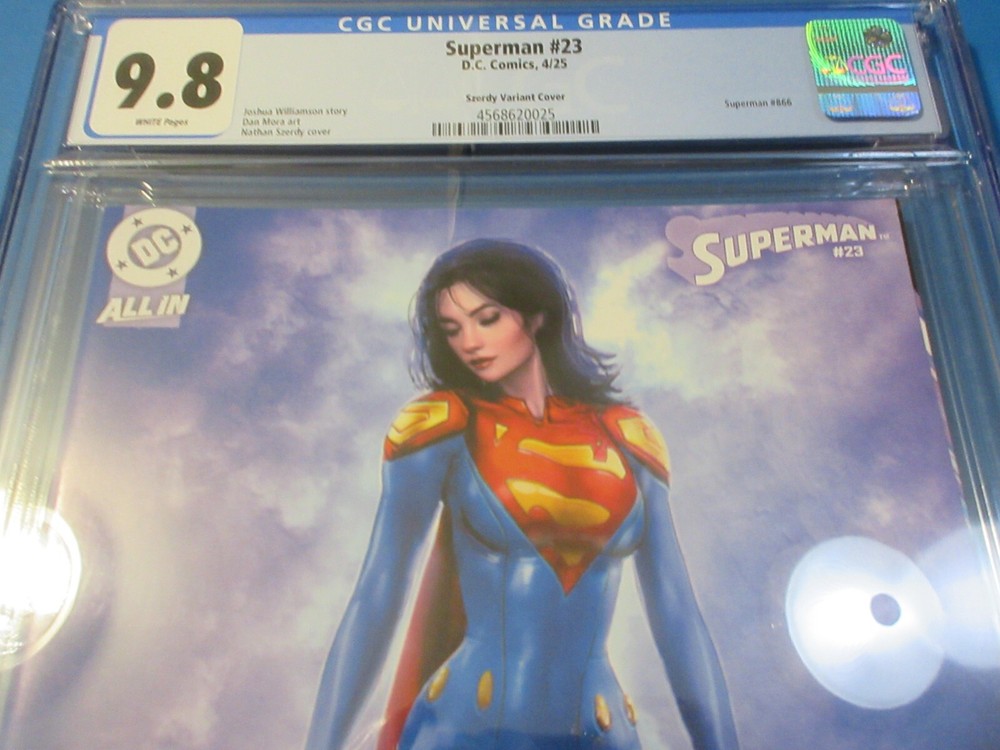 This auction is for Superman #23 variant in CGC 9.8 with a brand new case condition. This week we are selling an incredible collection including Amazing Spider-man , Silver Surfer, Dr. Strange, X-men, Iron Man, Hulk, Fantastic Four, Black Panther, Batman, CGC books and many other 1st appearance key issues. You are sure to find something you are looking for this week. Bonus Offer! I will add a bonus comic book for every 10 auctions you pay for on the same invoice this week. Our Shipping rates are: USA: 5 dollars flat rate for raw books with no limit. Canada: 16 Dollars for the 1st comic and 1.50 each after that. International: 18 dollars for the 1st comic and 1.50 each after that. CGC books are 11.99 for the 1st and 5 each after that in the USA, 24 bucks and 12 combined for Canada and 28 bucks and 14 combined for international. Feel free to ask questions. I guarantee superfast Domestic shipping! ...to open their eyes...that they may receive forgiveness of sins and a place among those who are sanctified by faith in me. Acts 26:18