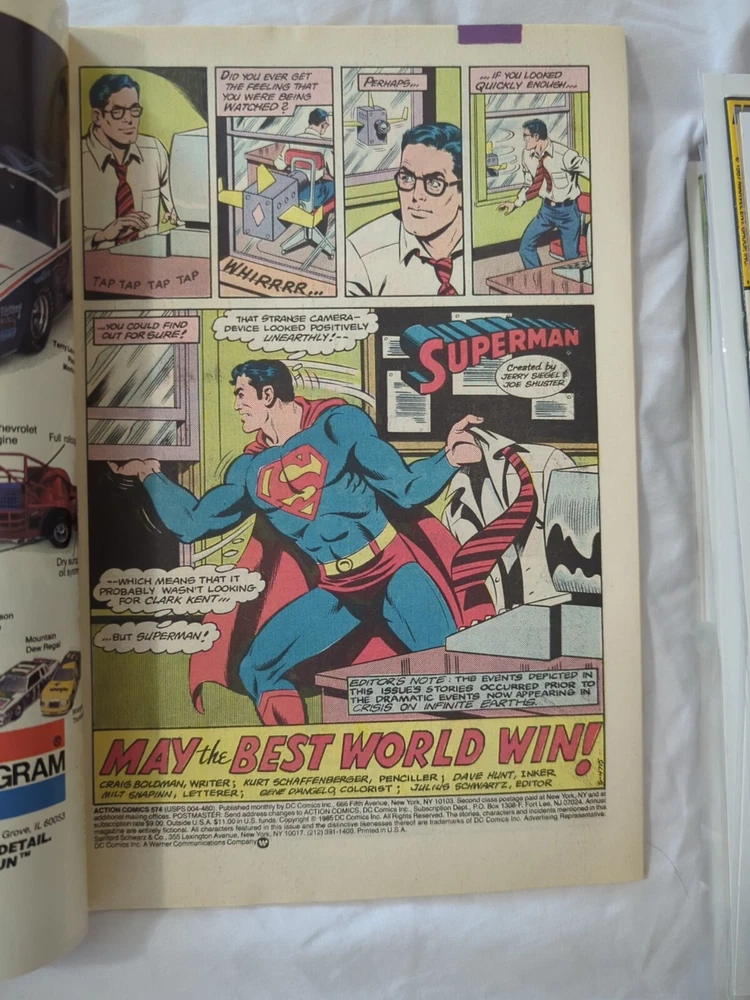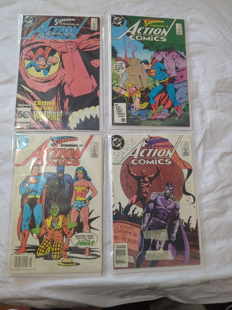 Dive into the Copper Age of comics with this lot of Superman Action Comics, featuring issues #565, 574, 577, and 579. Published by DC Comics in 1993, these vibrant, colorfully illustrated books showcase the iconic superhero in thrilling storylines that are perfect for any general audience collector or Superman enthusiast. Each comic book in this mixed lot is a first printing, ensuring their authenticity and collectible value. As part of the revered Action Comics series set in the expansive DC Universe, these books epitomize the tradition of US comics. They come in English language, adding to the appeal for American enthusiasts keen on the genre of superheroes during this classic era.