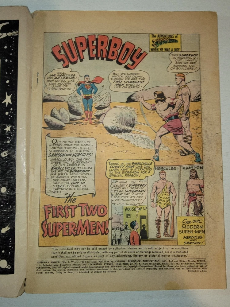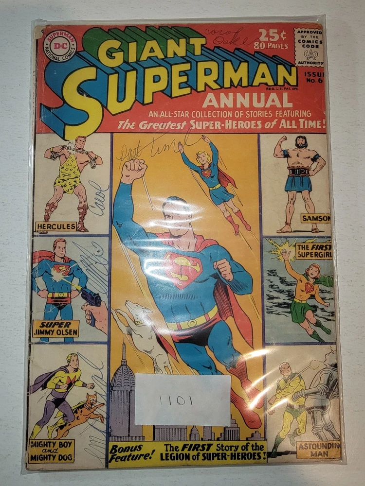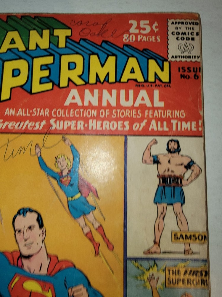 The Superman Annual #6 comic book from 1962 features a giant issue with appearances by Krypto and Supergirl, making it a valuable addition to any comic book collection. With a Silver Age era style and colorful artwork by George Klein and Curt Swan, this comic showcases the classic Superman universe in the DC Universe. This first printing single issue is professionally graded by Certified Guaranty Company (CGC) and is a must-have for any fan of superheroes and vintage comics. - Complete, spine wear and spine ticks. Writing on cover - Bagged and boarded - Shipped with Gemini packing to insure no damage during shipping - Usps ground Advantage Check out our 1000s of comics in our store We combine shipping