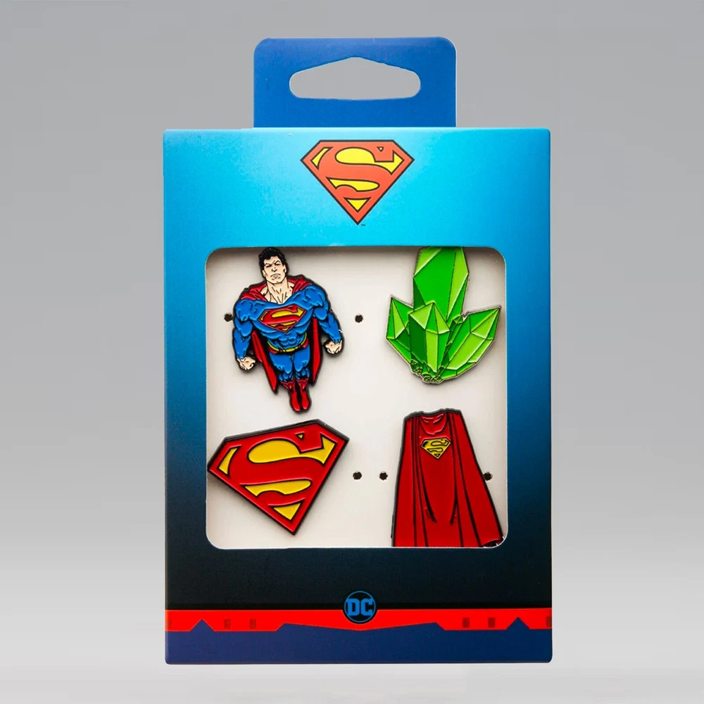 Add some "super" flair to your wardrobe with this 4-pack of enamel Superman pins! Featuring the Man of Steel himself, his iconic logo, his signature cape, and his mortal weakness kryptonite, this set has all you need to show off your DC Comics fandom! More Details: Officially licensed DC Comics pin set Pins measure approximately 1.5" each Arrives on full-color card backing