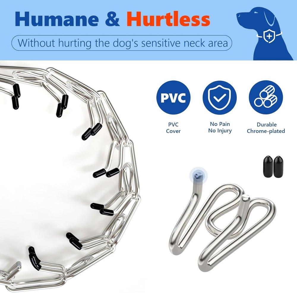 Supet Prong Collar for Dogs Training Collar, around 35 lbs), Metallic Product Details Item Weight: 4.2 ounces Manufacturer: Supet Item model number: training-collar-0004A Item Package Dimensions L x W x H: 4.65 x 4.21 x 1.69 inches Item Dimensions LxWxH: 5 x 5 x 0.1 inches Brand Name: Supet Target Audience Keyword: dogs Color: Metallic Size: S (Neck: 14"--16'' Weight: around 35 lbs) Material: Stainless Steel Care Instructions: Clean with damp cloth and mild soap, inspect regularly for damage Number of Items: 1 Breed Recommendation: Small Breeds Included Components: caps, links Product Dimensions : 5 x 5 x 0.1 inches; 4.23 ounces Item model number : training-collar-0004A Manufacturer : Supet Pattern: Dog Brand: Supet Closure Type: Buckle 【CORRECT TRAINING】--- Supet Dog No Pull Collar, Provide necessary training pressure while protecting the airway and neck sensitive area of dogs. No need to scream at a dog or punish it. You only have to pull the training collar and the dog will stop naughty immediately. Collar spreads pressure naturally to mimic mother dog carrying her pups. 【HUMANE AND NOT HURTING】--- This collars for dogs are smooth and rounded to ensure that no harm comes to your pet, and provides gentle pinching sensation to train them which is similar to how a mother dog corrects her puppies using her teeth, and at the same time, it also can ensure that your pet will pull significantly less while walking. 【STRONG AND RELIABLE】--- Supet steady dog training collar has a quick release snap, you can quickly unravel. It's necessary to use PLIERS when you need to add some links, you can't take it apart easily, either your pet dog. Be the pack leader with this safe and effective training collar. 【SUIT FOR ALL SIZES】--- Small Diameter 2.5 mm and length 14 inch, Medium Diameter 3.0 mm and length 16 inch, Large Diameter 3.5 mm and length 18 inch, X-Large Diameter 4.0 mm and length 20 inch. Please contact us to ask for a help if you don't know the exact size. 【QUALITY ASSURANCE】--- Supet team foucs our mind on pet supplies, our mission is to let all pet owners enjoy every second with their pets! We offer 100% satisfaction for each product, If you have any questions about the product, please feel free to contact us so we will help you within 24 hours. Click the Orange Button to Buy Now!