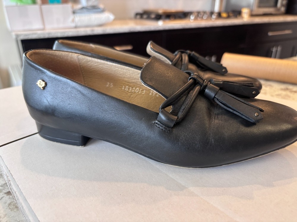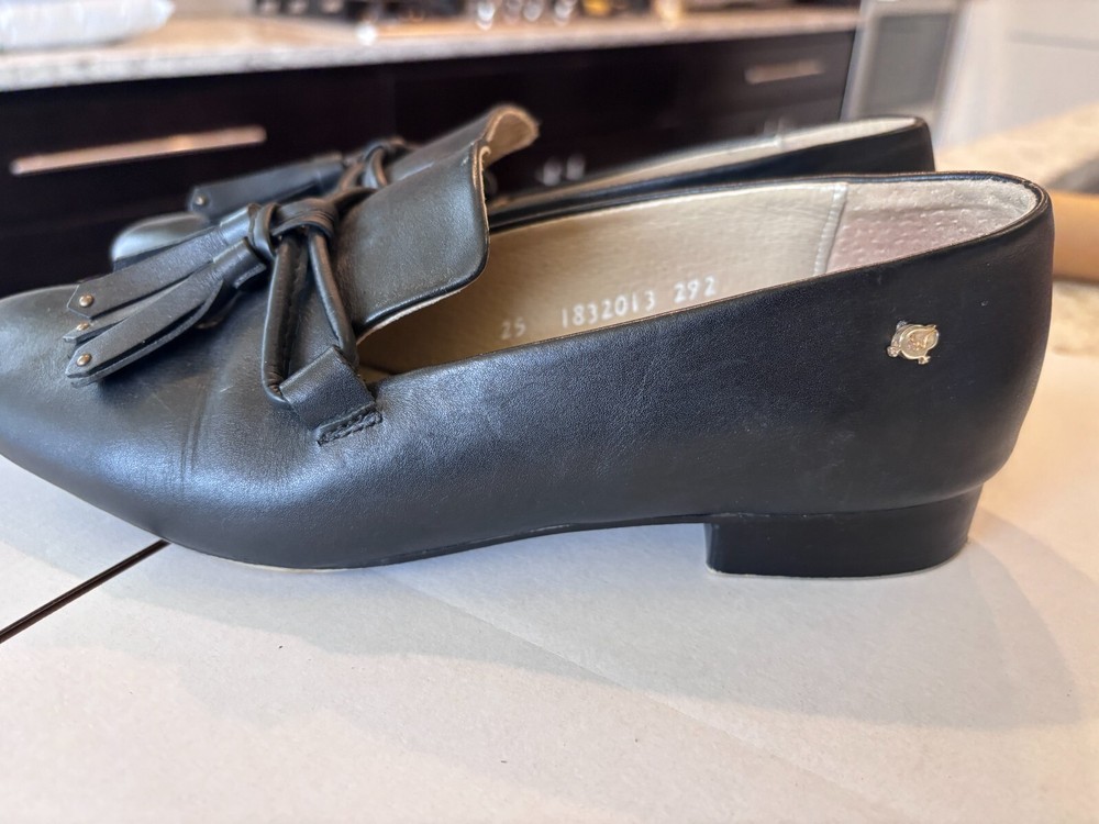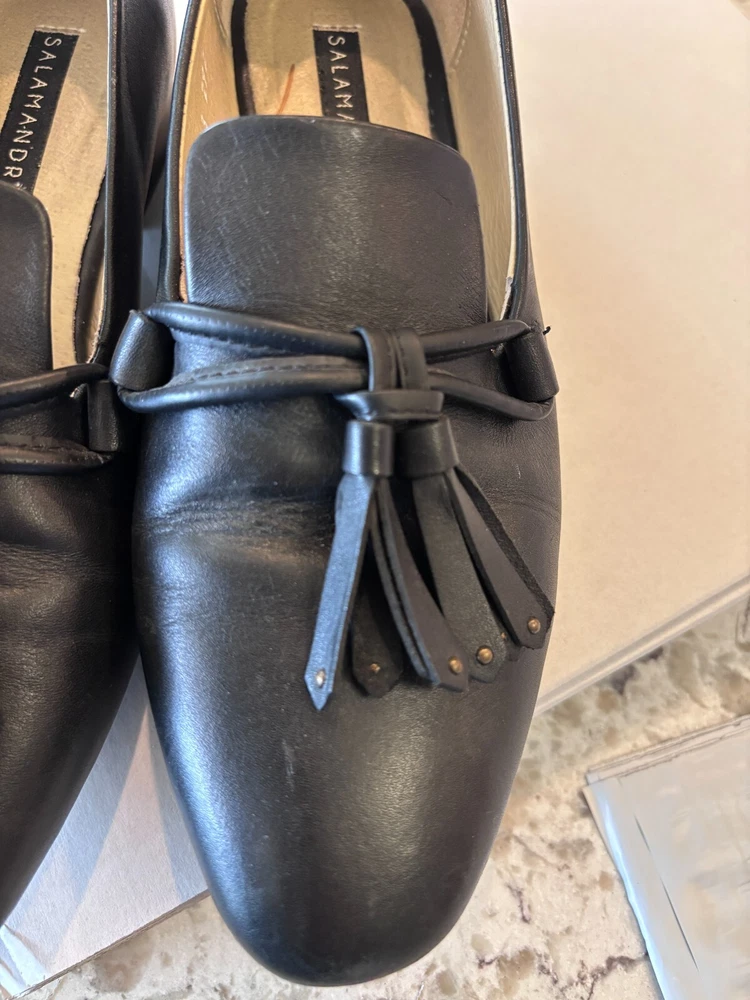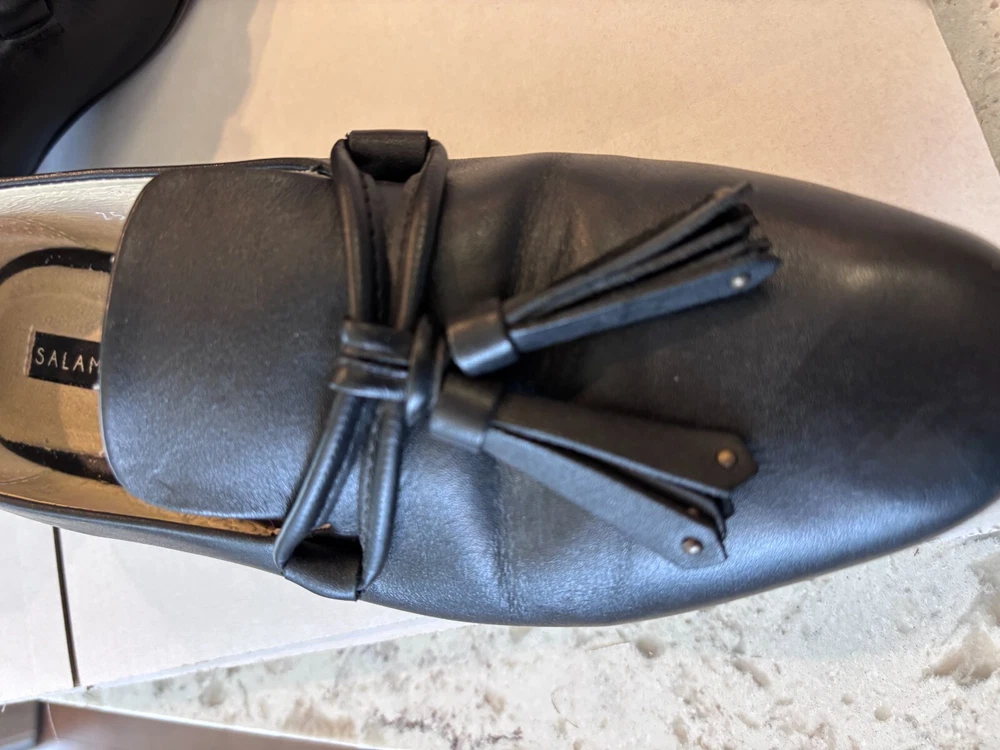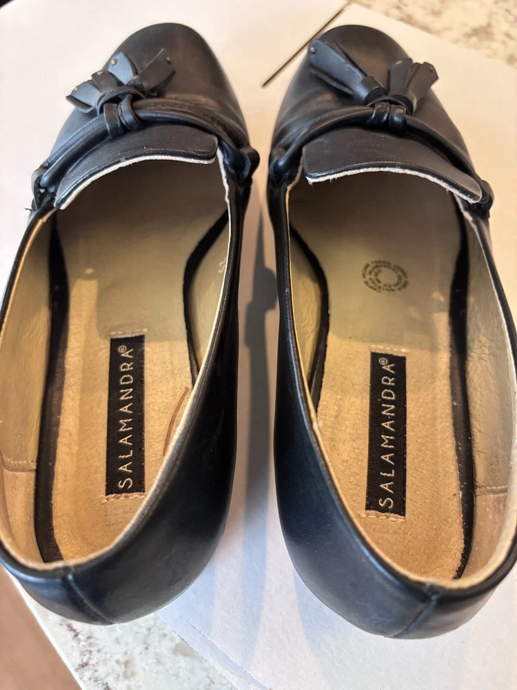 ๐Ÿ‡บ๐Ÿ‡ธ๐Ÿ‡บ๐Ÿ‡ธ Sold by a Proud Military Family ๐Ÿ‡บ๐Ÿ‡ธ๐Ÿ‡บ๐Ÿ‡ธ ~10% of every item I sell is donated to our charity - Veterans Community Project. Please visit my eBay store for all the items I have listed to help this great cause. Elevate your style with the sleek Salamander dress loafers, an essential addition to any fashion-conscious wardrobe. These shoes boast a versatile black hue, combining sophistication with comfort. The supple leather upper and lining ensure a luxurious feel, while the durable leather outsole promises lasting wear. Designed with practicality in mind, the slip-on closure makes them effortlessly chic and convenient. Crafted for the discerning woman, these loafers feature a classic round toe and a low wedge heel for a subtle lift. The solid pattern and non-customized design offer a timeless appeal, making them a perfect match for both casual and formal attire. With a size 8US fit and a medium width, these loafers are a testament to Salamander's commitment to quality and elegance.