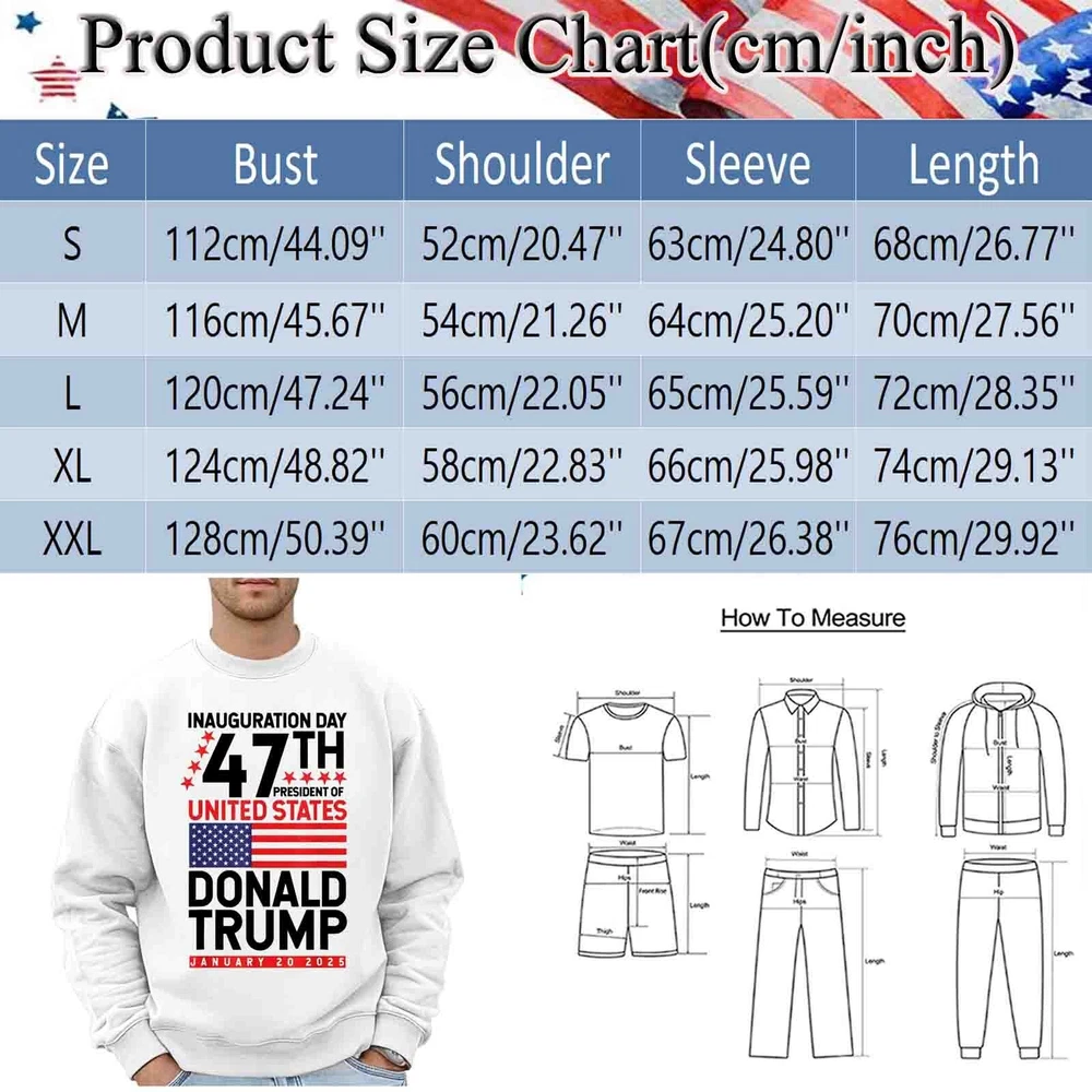 Male Print 2024 US Won Theme Casual Crewneck Graphic Plus Shirt Printed Solid Color Long Sleeve Top Sweatshirt Features: Material:It is made with soft fabric,This tank is very cool to wear and you will feel comfortable all day. Embroidered logo at chest, Drawstring hood and zip placket, Long sleeves with ribbed cuffs Spring,Fall and Winter Great for leggings,suitable for daily life, party, beach, vacation,,make you and cool. Regular fit, soft and comfortable. For Women and Juniors. Product Description: Season: All seasons Gender: Men Occasion: Daily and home Style: Fashionable Material: Polyester Pattern Type: Solid Sleeve Length: Length Fit: Fit for size What you get: 1 PC Sweatshirt Size Bust Shoulder Sleeve Length S 112cm/44.09'' 52cm/20.47'' 63cm/24.80'' 68cm/26.77'' M 116cm/45.67'' 54cm/21.26'' 64cm/25.20'' 70cm/27.56'' L 120cm/47.24'' 56cm/22.05'' 65cm/25.59'' 72cm/28.35'' XL 124cm/48.82'' 58cm/22.83'' 66cm/25.98'' 74cm/29.13'' XXL 128cm/50.39'' 60cm/23.62'' 67cm/26.38'' 76cm/29.92'' Size:S Bust:112cm/44.09'' Shoulder:52cm/20.47'' Sleeve:63cm/24.80'' Length:68cm/26.77'' Size:M Bust:116cm/45.67'' Shoulder:54cm/21.26'' Sleeve:64cm/25.20'' Length:70cm/27.56'' Size:L Bust:120cm/47.24'' Shoulder:56cm/22.05'' Sleeve:65cm/25.59'' Length:72cm/28.35'' Size:XL Bust:124cm/48.82'' Shoulder:58cm/22.83'' Sleeve:66cm/25.98'' Length:74cm/29.13'' Size:XXL Bust:128cm/50.39'' Shoulder:60cm/23.62'' Sleeve:67cm/26.38'' Length:76cm/29.92''
