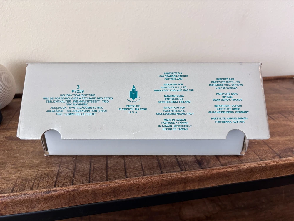 ๐บ๐ธ๐บ๐ธ Sold by a Proud Military Family ๐บ๐ธ๐บ๐ธ ~10% of every item I sell is donated to our charity - Veterans Community Project. Please visit my eBay store for all the items I have listed to help this great cause. Elevate your holiday decor with the Partylite Holiday Trio, a set of three etched candle tealight holders that bring a contemporary touch to any Christmas setting. Each piece showcases a stunning round, glossy glass design, featuring a cascade of greens, blues, and reds that capture the festive spirit. Suitable for tealight candles, these holders are a versatile addition to your seasonal ambiance. Crafted with care in Taiwan, this retired collection from PartyLite is sure to be a conversation starter. Whether placed on a mantel, shelf, or table, the vibrant multicolor scheme and sleek style of these glass candle holders will create a warm and inviting atmosphere in your home during the most wonderful time of the year.