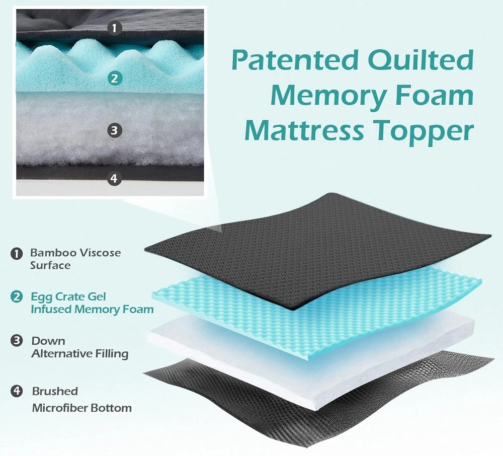 Supportive 72x84 California King Memory Foam Topper - Breathable & Stretchable