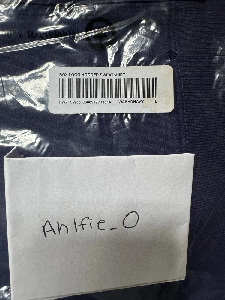 100% authentic, Brand New, Never Worn Supreme Box Logo Hooded Sweatshirt FW21 Washed Navy Size Large Ships USPS Priority