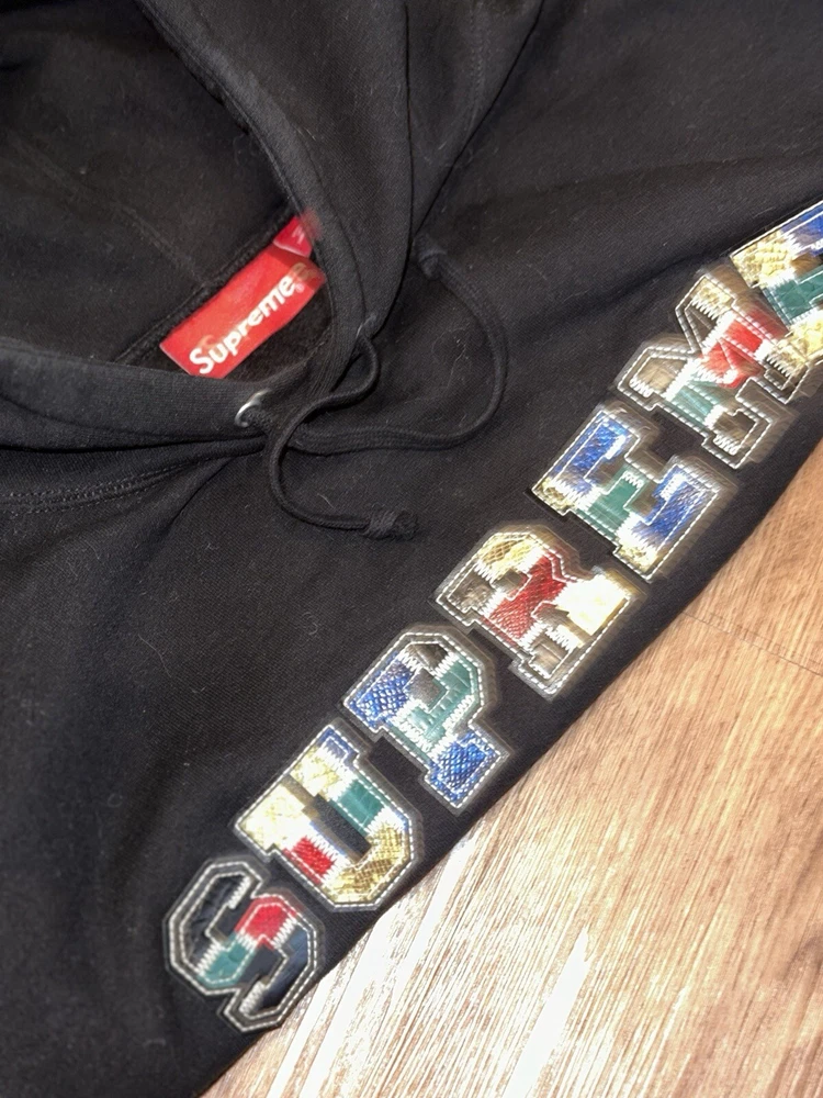Supreme Collegiate Patchwork Hoodie. Shipped with USPS Priority Mail.