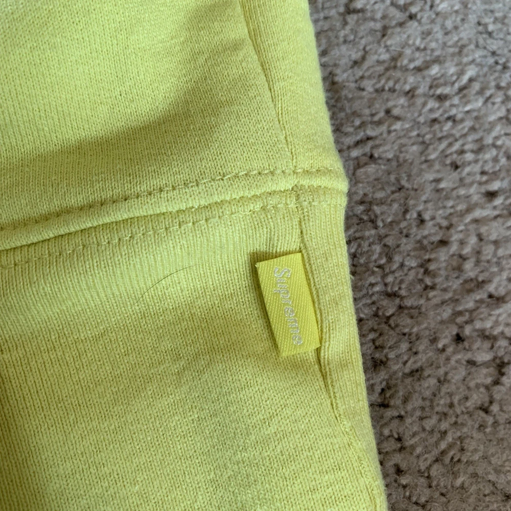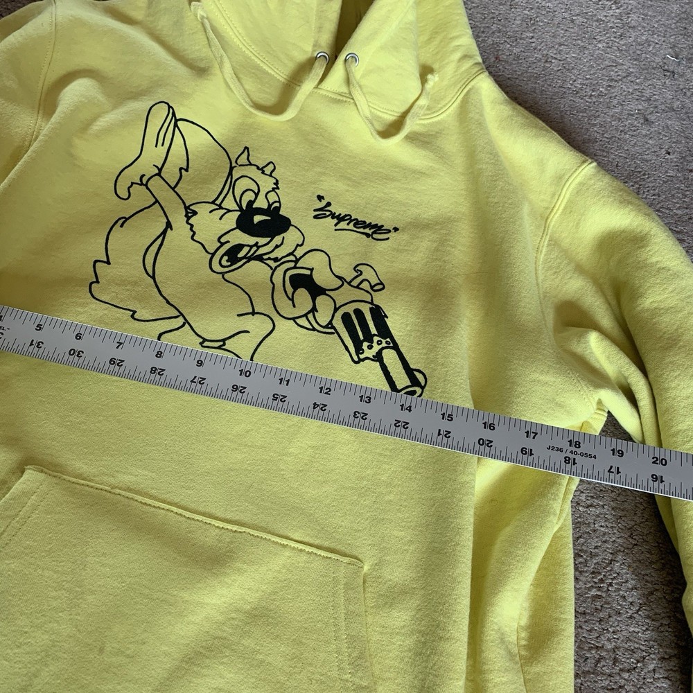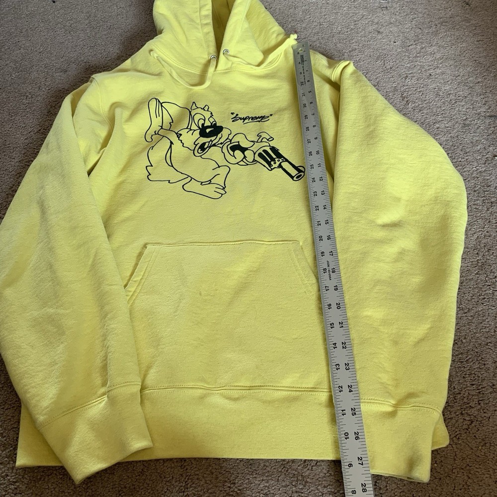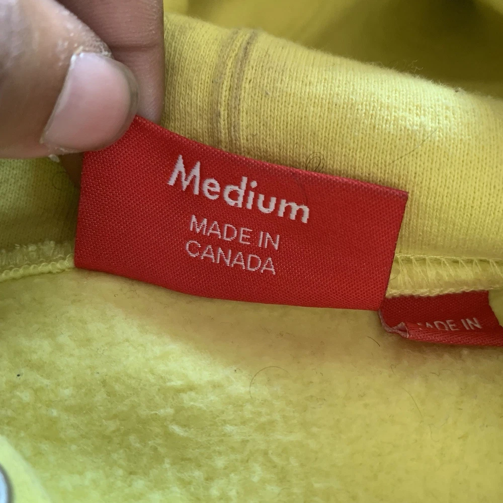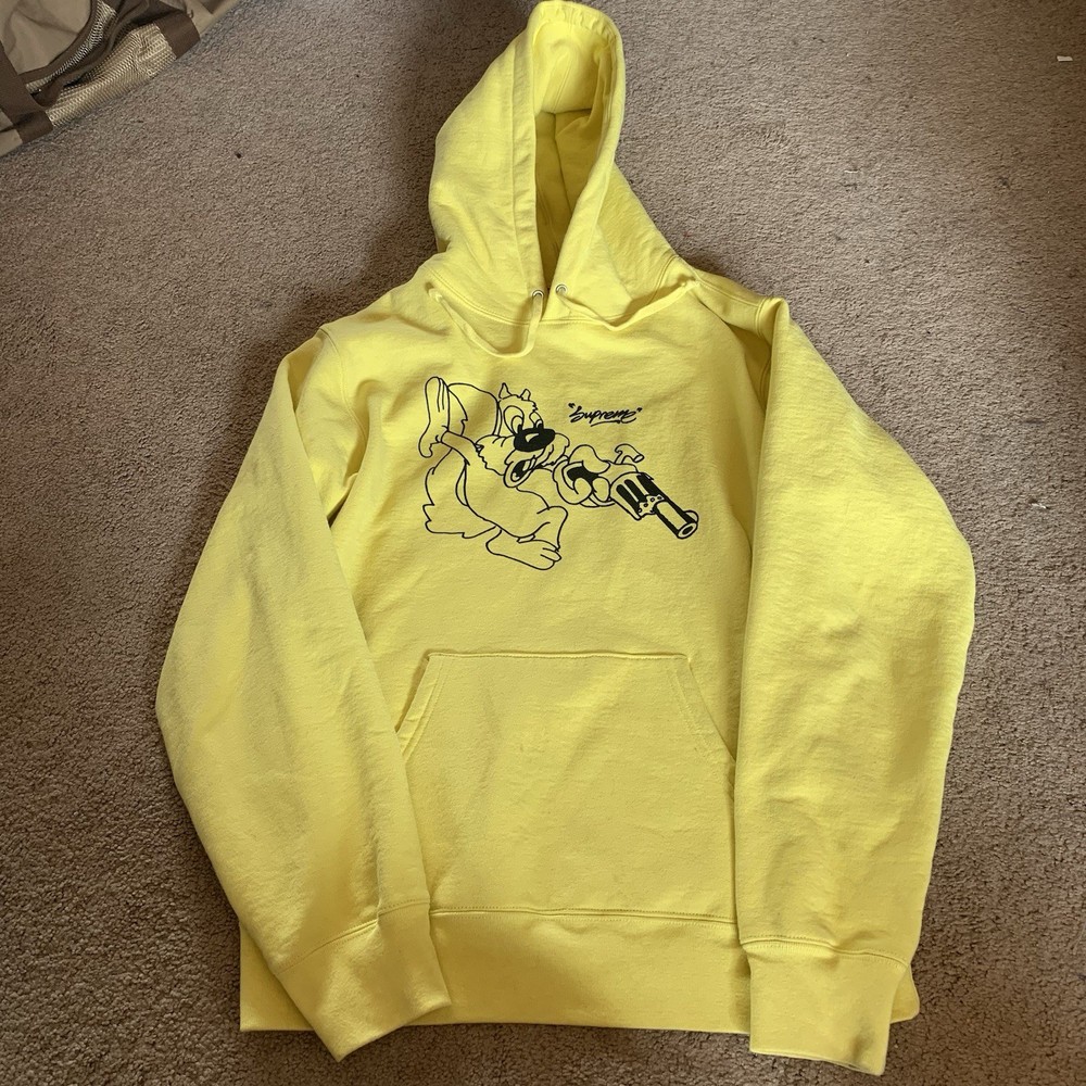 Pattern:SolidFeatures:Drawstring, Kangaroo Pocketgtin13:Does not applySize:LTheme:GunMaterial:100% CottonUPC:Does not applySize Type:RegularStyle:HoodieSleeve Length:Long SleeveFeatured Graphics:Squirrel, LogoCountry of Origin:CanadaType:HoodieDepartment:MenColor:YellowBrand:SupremeAccents:Logo