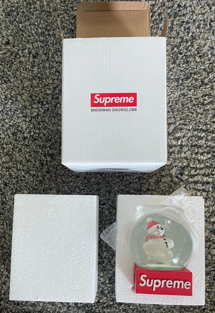 Get your hands on this limited edition Supreme Snowman Snowglobe from the FW21 collection. Perfect for the holiday season, this round glass snow globe. The special edition snow globe is an indoor item and is perfect for collectors or as a gift for adults. The Supreme Snowman Snowglobe is a must-have for any seasonal or holiday-themed collection. It is an authentic and high-quality item that is perfect for display or as a thoughtful gift. Don't miss out on the opportunity to add this unique snow globe to your collection.