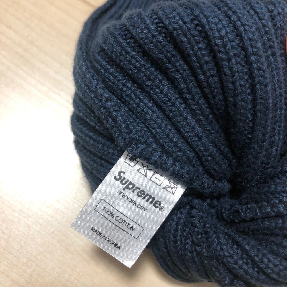 Supreme Supreme 13FW Ribbed Beanie Navy Supreme Knit Cap Bonbon Navy