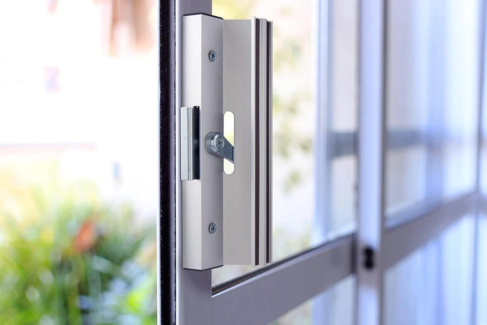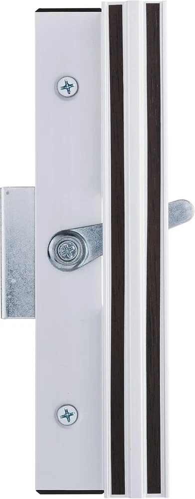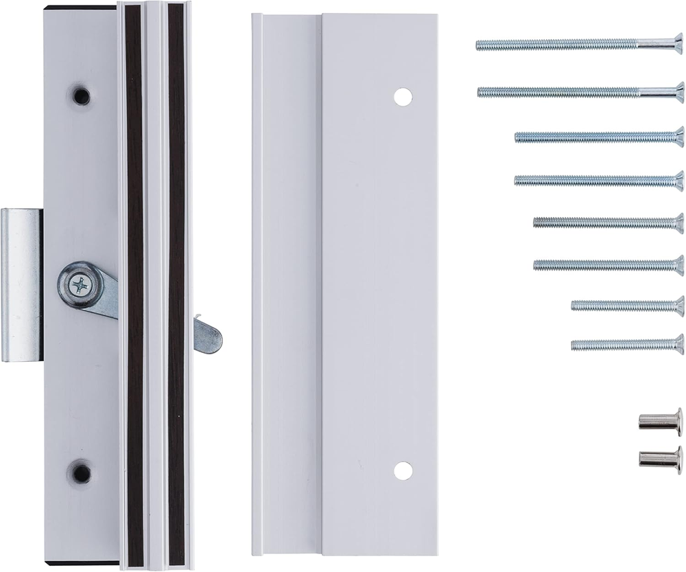 IDEAL APPLICATION: This sliding glass door handle is ideal for both right- and left-handed patio doors 1-1 1/2” thick SETUP: Includes a latch hook for security DURABILITY: Quality and durable construction ensures reliable everyday use on your sliding patio door READY TO INSTALL: All installation hardware is included; Easily installs in 4 15/16" center to center hole spacing CLEAN SUBTLE LOOK: High-quality finish allows it to blend in perfectly with your door and frame Wright Products surface mounted patio door latch is non-handed and will work on both right or left hand door applications. Available in Aluminum.