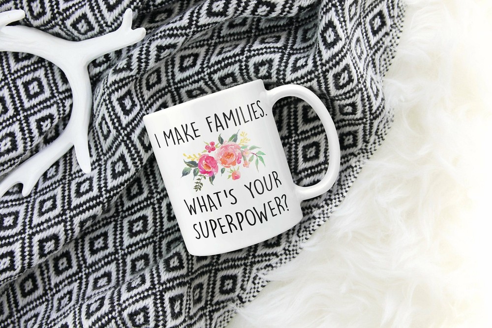 Surrogacy Mug Surrogate Mother Gift Surrogate Present I Make Families Mothers Product Details.. This high quality 11oz. ceramic white mug has a premium hard coat that provides crisp and vibrant color reproduction sure to last for years. Perfect for all hot & cold beverages. The highest quality printing possible is used. It will never fade no matter how many times you wash it. Material: 100% Ceramic. Print both sides. Dishwasher and Microwave Safe. High Gloss + Premium White Finish. Printed in the U.S.A. Personalized & Custom. We support personalized and custom mug to add custom, when placing an order, you can add notes to the "order note" in shipping address section. Also you can contact us directly via message. Shipping Info. Ready to ship in 1 to 2 business days, All products are made-to-order and proudly printed in the United States. Shipped by USPS and DHL, You will receive your order in 5-7 days. Replace & Refund. All products are defective during shipping broken, chipped will be replaced free of charge. You are not satisfied with the product, we will refund 100% money to you. If any other issues arise, please do not hesitate to message, we would be more than happy to assist you.