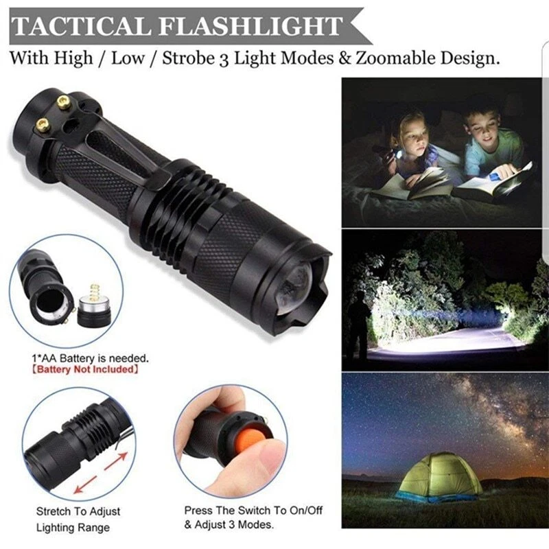 12 in 1 Outdoor survival kit Set Camping Travel Multifunction First aid SOS EDC Emergency Supplies Tactical for Wilderness tool WHAT'S IN THE BOX? 1. 4 in 1 Survival paracord ( Pleast note: As mailing range, there are no flint in the paracord !) 2. Powerful laser pointer: Provides remote indication when calling for help outdoors. The laser range is more than 2000M and the beam is visible, especially at night. 3. Upgrade Compass: 360 degree rotating bezel for easy navigation & orienteering, compass glows in the dark making it easy to read in all weather at any time. 4. Flashlight: with zoomable design, heavy duty, compact handheld flashlights, zoom in for an intense beam or out for wider illumination. 3 light modes like high / low / strobe. with its ultra-bright LED light, and ability to run for hours of just a single AA battery (BATTERY NOT INCLUDED). 5. Heavy-Duty Tact-Pen with Carbide Tip : made from tungsten steel for superior strength & portability, break a window / glass, escape in an emergency situation 6. Emergency Blanket: provides convenient easy protection in all cold or warm weather states. 7. Upgrade Survival Knife: high quality survival knife, great for any use. 8. Wire Saw: used for cutting wood (no more than 3 inches), plastic, bone, rubber and soft metal. 9. Water Bottle Clip: simple and firm way to carry water bottles. 10. Credit Card Knife: credit card sized, easily to fits inside your wallet, pocket. [11 Functions] can opener, bottle cap opener, 4-position wrench, 2-position wrench, butterfly screw wrench, direction ancillary wrench. 11. Whistle: two holes, the sound is more loud. can let the rescue team find you faster 12. Mini Light: small, practical can also be a key ring 13. Compact Durable Waterproof & Shockproof Carrying Case (all the survival tools will be packed in Black Box) :ABS Plastic Durable Water Proof Case to keep your items safe from the elements.Designed to fit into most compact spaces for easy access. Attention : There are a lot of pirate survival box in market, compare the survival box quality as below, we sell the most durable survival gear box now ! - Carry on with you - We've packed this kit into a super compact, discreet, ultra-durable, waterproof and easy to carry case that is the size of a small book. Our kit is compact enough to throw in your backpack, your car, your office drawer or store in virtually any small handy space that you can access quickly! Package Dimensions: 7.1 x 4.8 x 2.4 inches Item Weight: 1 pounds Small size emergency first aid kit with 13 multi tools, easy to carry What You Get: 1 x Multi-function scraper 1 x Emergency tactical pen 1 x Emergency thermal blanket 1 x Tactical torch flashlight 1 x Multi-function compass 1 x Mini keychain light 1 x Tactical military knife 1 x Saber card 1 x Whistle 1 x Wire saw 1 x Survival wristband paracord 1 x Water Bottle Clip 1 x Shockproof case 1 x Laser pointer Dropping are welcome, please contact me for any question. Shipping: All orders will be dispatched within 24 hours once confirmed you payment. As international shipping is affected by many factors: customs, flights, weather, war, trade, policy, etc, some shipment do get delayed sometimes, if you have not received your shipment after the expecting working days, please contact us, we will track the shipment and get back to you ASAP. Payment: We currently accept Aliexpress payment. We can ship the parcel to your aliexpress address, please noted other address if you want. Feedback: Your satisfaction is our main goal and your feedback is very important to us. We want our customers to be 100% satisfied with their order. when you receive your order, please take a moment to leave us positive feedback and 5 star rating to us is appreciated, it is vital and very valuable to the continued success of our business. If you are not satisfied, please email us before leaving neutral feedback and negative feedback, and please give us 1 business days to resolve your complaint.your full satisfaction is our duty. Return: All items will be checked carefully and packaged in good condition. We offer 14 days dead on arrival replaycement warranty from the date of receipt. About us: We guarantees all our customers would be satisfied with our product. If you are not satisfied, we will try our best to make you pleased on your purchase. Contact us: If you have any questions, please do not hesitate to contact us in Aliexpress. Emails are normally answered within 12 hours. We work hard to keep our feedback positive. We always provide timely responses to emails and strive for a superior customer experience.