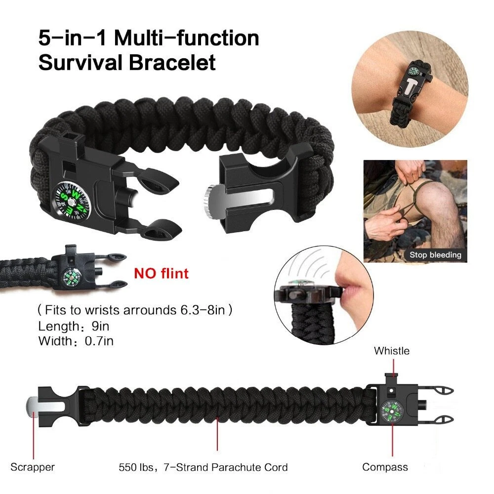 $ 27.86Emergency Survival Gear Kit Outdoor Survival Tool with Survival Bracelet Whistle