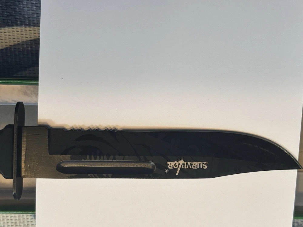 The Survivor 4 inch Fixed Blade Knife in Black is a high-quality collectible knife made with stainless steel and a drop point blade. The knife features a full tang design with a serrated edge, measuring between 3.5 - 4 inches in length. Perfect for collectors or outdoor enthusiasts, this modern fixed blade knife offers durability, precision, and style in a sleek black finish.