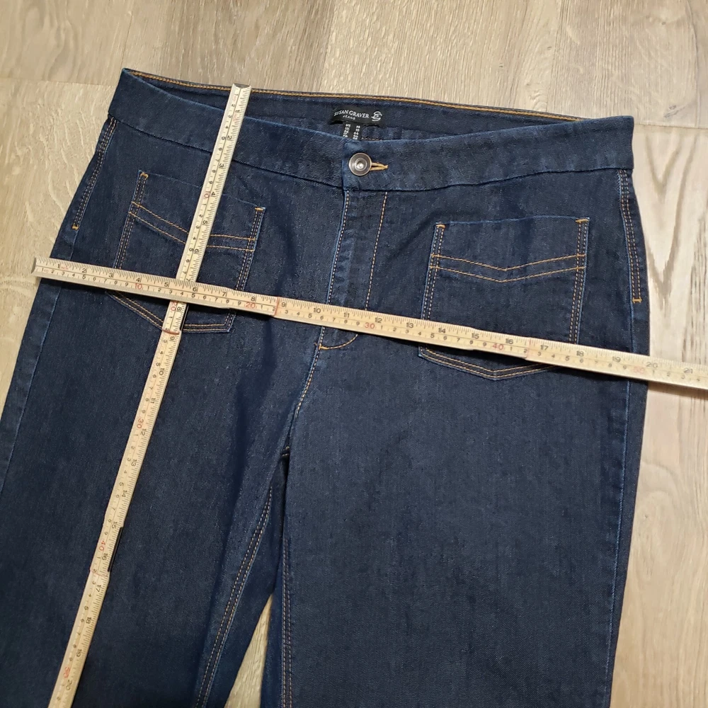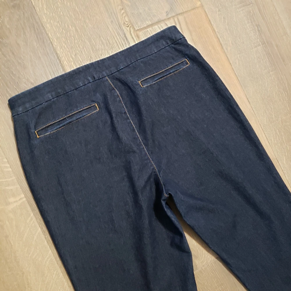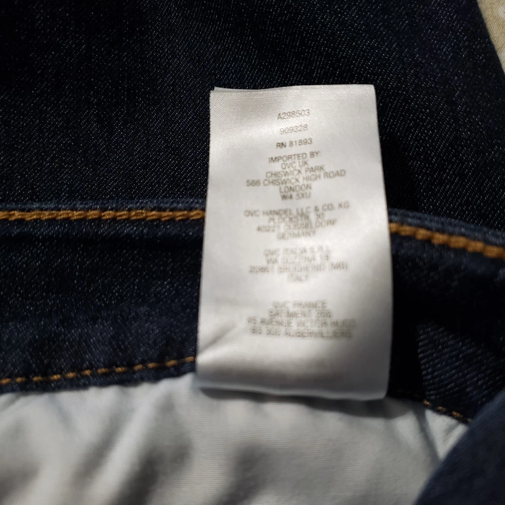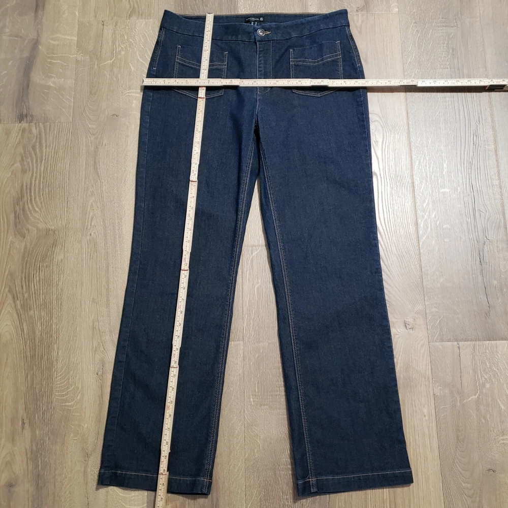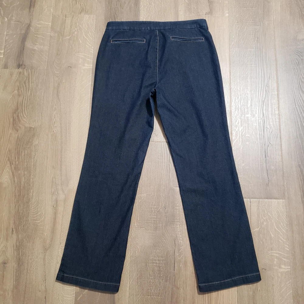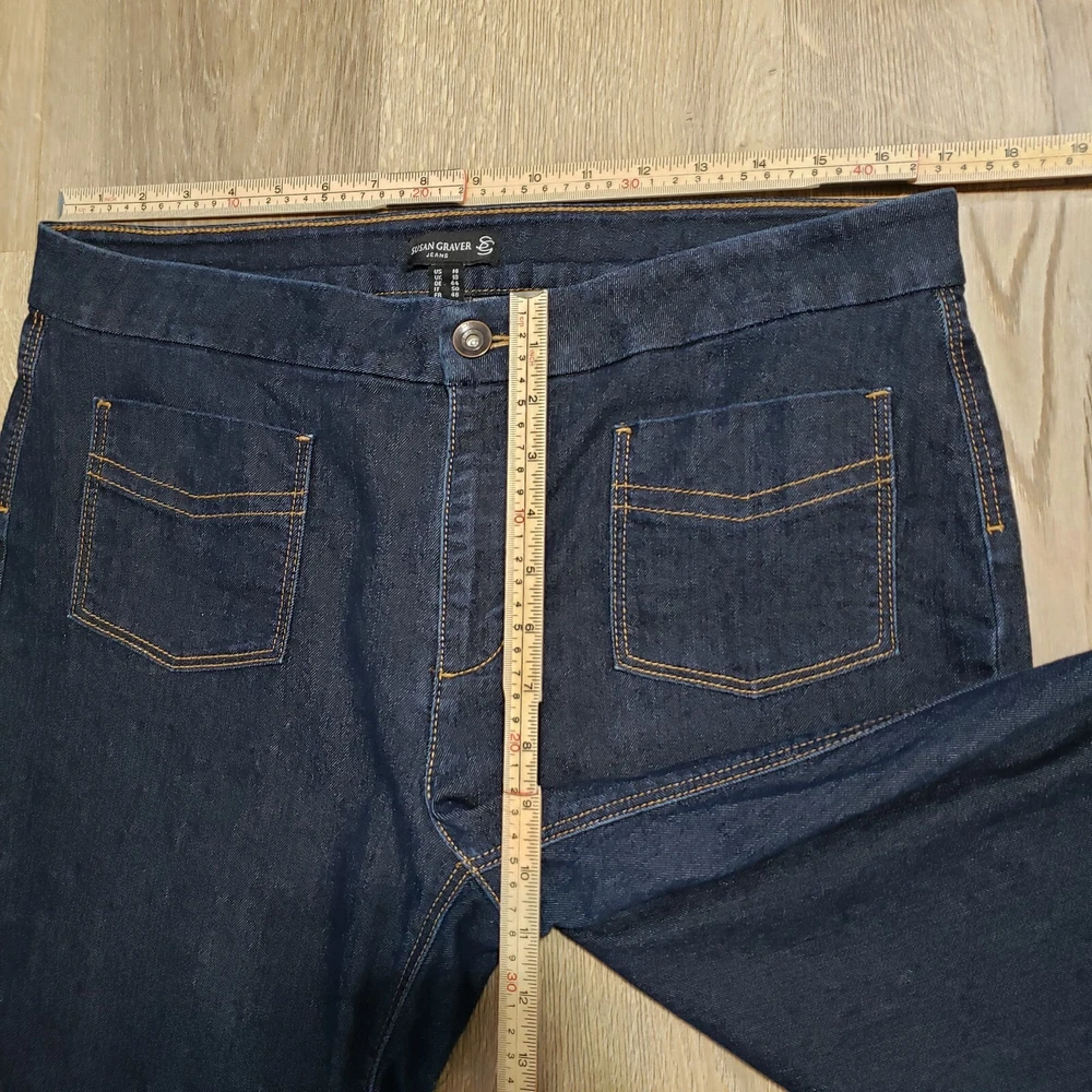 Susan Graver Jeans Size 14 Mid Rise Stretch Dark Wash Good pre-owned condition No flaws found See all photos for condition, color and measurements