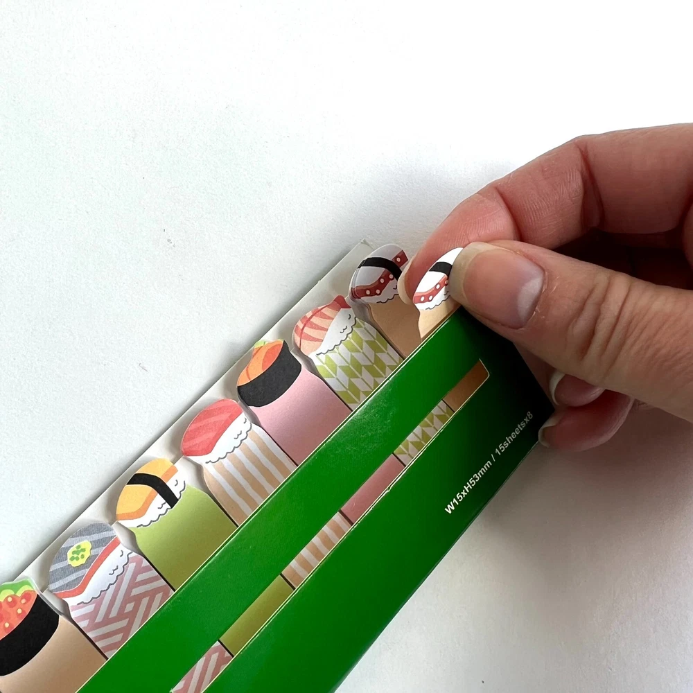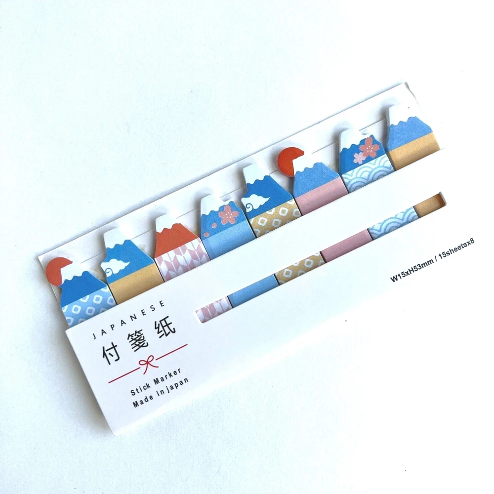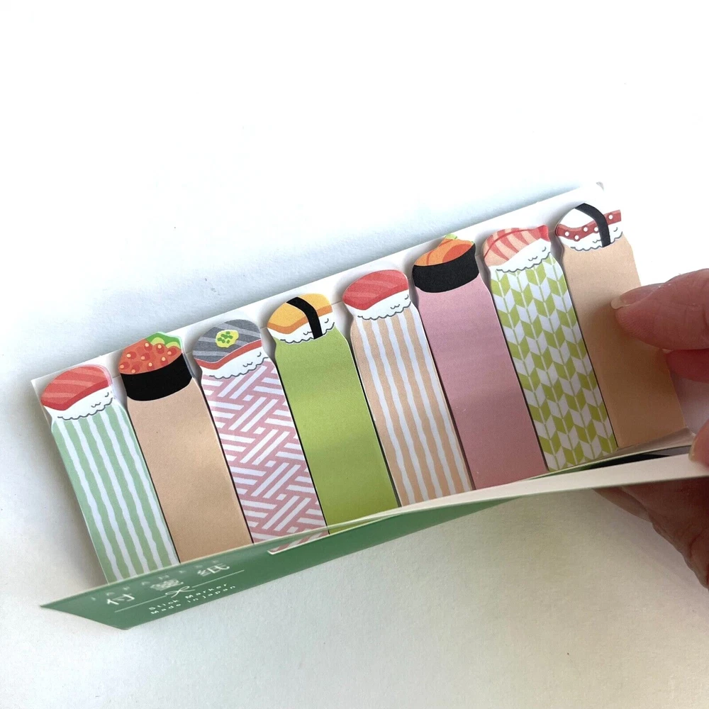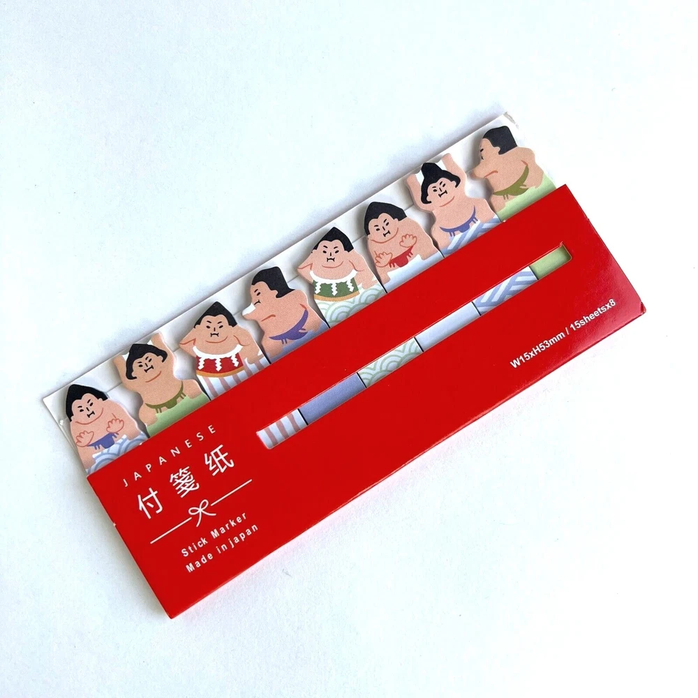 Use these fun sticky tabs as bookmarks and mark pages in your notebooks. For school and the office. Each pack has 8 designs with 15 sheets each. The little folders can slip into book covers or pockets so they are ready to use. Choose the sushi, Mt Fuji or Sumo wrestler. I have more stickers, washi tape and paper for sale. I do combine shipping. Please put all the items you want to purchase in ONE cart and then pay. I will refund you the difference in shipping after shipping label is printed. Let me know if you have any questions through eBay messaging. Thank you for stopping by!