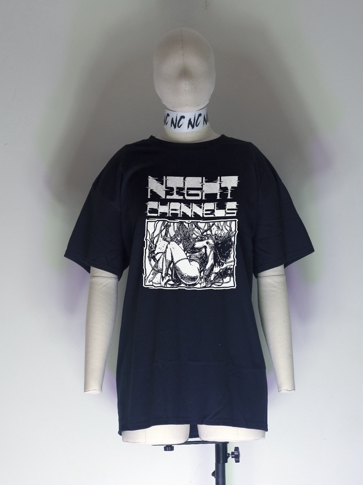 Night Channels eBay shipping is to the continental US only! If you are anywhere outside of the continental US, please search elsewhere for Night Channels to learn more about our policies. Please note that Night Channels clothing can take up to 10 business days to ship since they are made to order. You may receive a shipping notification and a tracking number multiple days before your order actually leaves our distribution center. If your order takes longer than 19 days to arrive, please contact us to receive a $5 Night Channels gift card. — When sex becomes tangled in the bondage of surveillance, our deepest desires will connect through wires. Long live the electric lust as it pulses eternally, and uploads unknown feelings to our shared human experience! — Our classic tee, 1990s style at a 1990s price. Made of 100% heavy weight cotton with sturdy, double sewn stitching all around. Stay weird — on a budget.