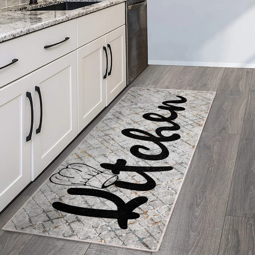 This delightful, eye-catching kitchen accessory protects the floor and safeguards you from accidental slips caused by water or oil spills. This inviting flooring mat not only elevates kitchen decorations but assures maximum safety, security, and comfort.Features: Includes 1 non-skid washable ultra-thin blended cotton kitchen runner rug only Reads 'kitchen' in case you forget where you are Lightweight, soft, and durable design for lasting enjoyment Machine washable (30 degrees C) Tumble dry on low; air dry if needed Dimensions: 59 inches long x 20 inches wide x 0.3-inch pile height Free Shipping Over $49.99* Details SussexHome Non-skid Ultra-thin Blended Runner Rug - 20" x 59" Product Description: This delightful, eye-catching kitchen accessory protects the floor and safeguards you from accidental slips caused by water or oil spills. This inviting flooring mat not only elevates kitchen decorations but assures maximum safety, security, and comfort. Features: Includes 1 non-skid washable ultra-thin blended cotton kitchen runner rug only Reads 'kitchen' in case you forget where you are Lightweight, soft, and durable design for lasting enjoyment Machine washable (30 degrees C) Tumble dry on low; air dry if needed Dimensions59 inches long x 20 inches wide x 0.3-inch pile height