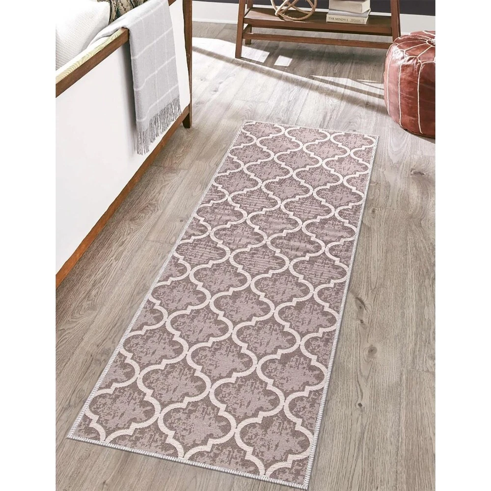 SussexHome Non-skid Ultra-thin Blended Runner Rug - 20" x Trellis Brown 20" x 59