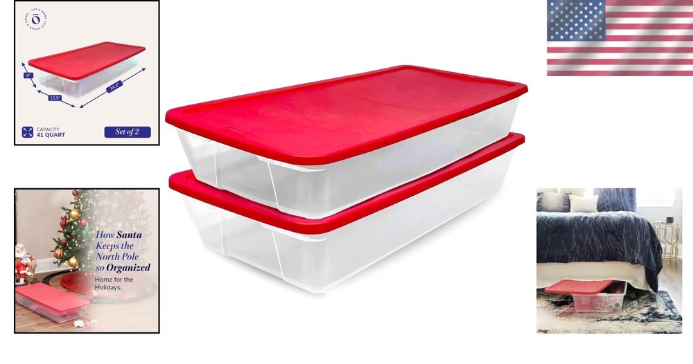 Sustainable 41-Quart Red Storage Totes - Clear Holiday Organizers (Set of 2) ‹ › ‹ › ‹ › ‹ › ‹ › ‹ › ‹ › ‹ › ‹ › Sustainable 41-Quart Red Storage Totes - Clear Holiday Organizers (Set of 2) for Your Home: Transform your space with our versatile storage solutions. Proudly made in the USA, we provide the containers that take organization to the next level. Features: Set of 2 spacious 41-quart clear plastic storage bins. Perfect for large items like Christmas décor, gift wrap, seasonal clothing, and art supplies. Tight-fitting lids provide a secure closure to protect against dirt, insects, and water. Stackable design maximizes vertical space allowing neat storage and easy access in any area. Made from 90% recycled plastic for an eco-friendly choice. Benefits: Effortlessly organize your home, office, or classroom with these versatile totes. Protect your belongings while contributing to a sustainable environment. Enjoy a streamlined and tidy living space with a space-saving stackable design. Durable construction ensures these bins stand the of time. Why choose our Sustainable Storage Totes? Are you ready to embrace the beauty of organization without compromising on sustainability? Our Sustainable 41-Quart Red Storage Totes are the perfect clarity that your home deserves. Crafted from 90% recycled materials, these bins not only keep your cherished items secure but also help protect the planet. With a tight-fitting lid that locks out dirt and water, and a stackable design that optimizes your space, you can store anything from holiday decorations to essential office supplies in style. Choose our totes and make a sophisticated and eco-conscious statement in your home today! Shipping Free & Fast Shipping - We offer free shipping to most of the USA with a normal delivery time of 3-7 days. However, due to the current situation, additional delivery time (up to 3 weeks) may be required for some items. Alternative Carriers - We may use alternative carriers (e.g. USPS, FedEx, UPS, etc.) to ensure your package arrives safely and on time. Due to the use of multiple carriers, we are unable to provide a tracking number automatically. Handling Time - Orders are processed and shipped within 1-2 business days of receiving cleared payment. Shipping Restrictions - Shipping to Alaska, Hawaii, Puerto Rico, Guam, and other US territories may incur shipping charges or delivery restrictions. Please contact us before ordering, or your order can be refunded/cancelled. State Restrictions - There may be restrictions based on your state of purchase. For example, certain items may not be shipped to California due to state regulations. Contact for Tracking Updates - If you require tracking updates or have any concerns about the delivery of your order, please feel free to contact us, and we will be happy to assist you. Return 30-Day Hassle-Free Returns - We want you to be completely satisfied with your purchase. If you are not, you can return the item within 30 days of receiving it for a full refund or exchange. Easy Return Process - To start a return, simply contact us and we will provide you with a prepaid return shipping label and detailed instructions. Restocking Fee - There are no restocking fees for returns. However, the buyer is responsible for return shipping costs if the return is not due to a seller's error. Refund Processing Time - Refunds will be processed within 5 business days of receiving the returned item in its condition. Payment We accept all major credit cards, PayPal, and Apple Pay for your convenience. Your payment information is secure and encrypted to ensure a safe and seamless transaction. Please complete your payment within 3 days of purchase to avoid any delays in shipping. Feedback Your feedback is extremely important to us. We strive to provide the best products and customer service possible. If you are satisfied with your purchase, please take a moment to leave us a positive review. If you have any concerns or issues with your order, please contact us before leaving negative feedback. We are committed to resolving any problems and ensuring your satisfaction. Contact Us If you have any questions or concerns, please feel free to out to our customer support team. You can contact us through the eBay messaging system. We are available Monday to Friday, 9:00 am to 5:00 pm EST, and we will do our best to respond to your inquiry within 24 hours. Buy it now and enjoy a pleasant shopping experience! Material: Plastic, Resin Item Height: 6 Inches Item Length: Details In Description Item Width: Details In Description Type: Details In Description Item Weight: 3.8 Pounds Capacity: 41 Quarts Color: Red Number of Compartments: 1 Shape: Rectangular Pattern: Storage Container Style: Snaplock