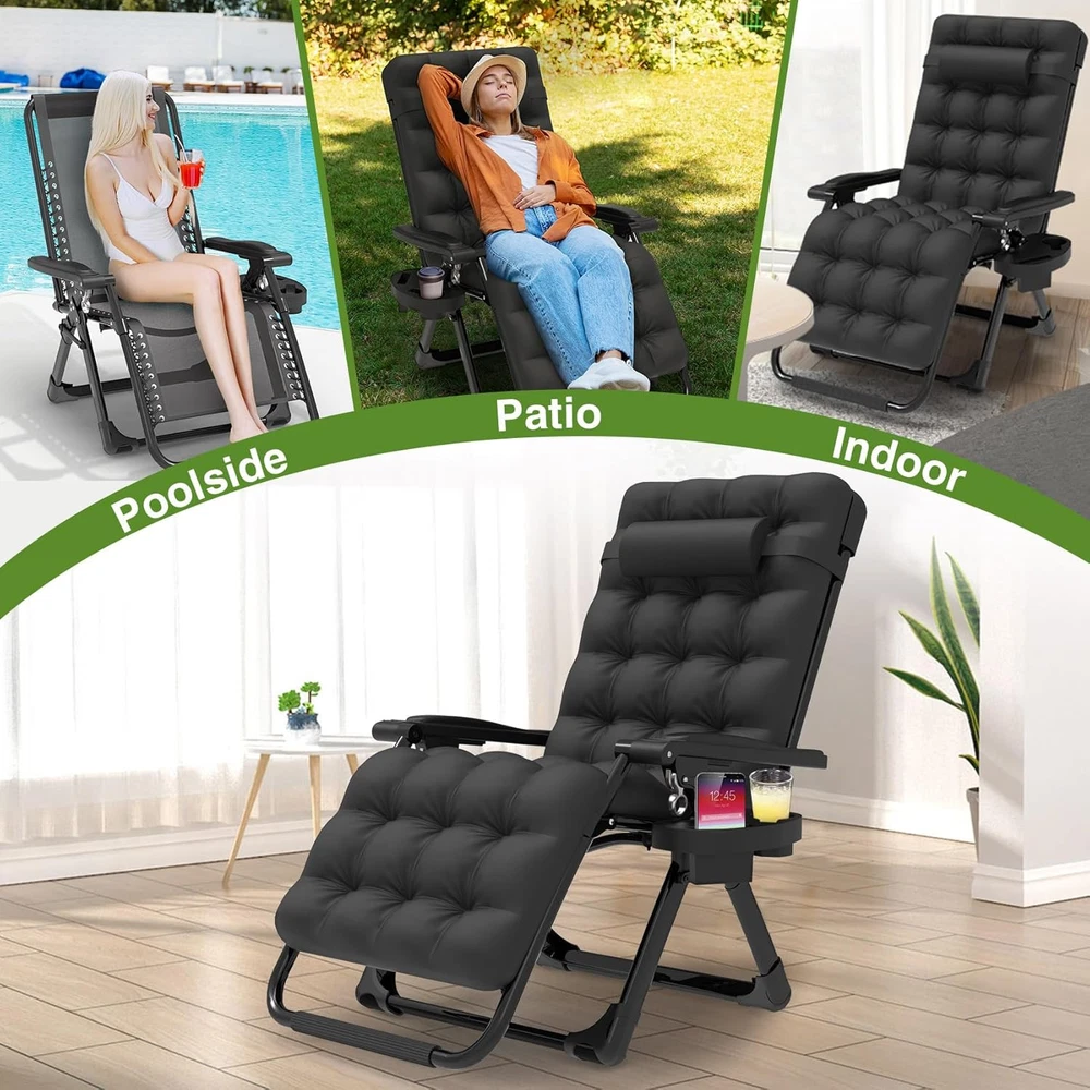 Suteck 26 Inch Zero Gravity Reclining Camping Lounge Chair in Black