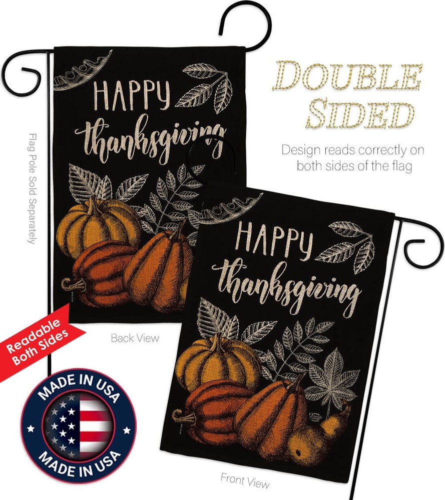 Thanksgiving Beautiful Mini Garden Flag have variety of Garden Flag for all occasions. Uniquely design for hanging indoor or outdoor use. We are committed to offering you exceptional values. Our customers enjoy displaying our Garden Flag for longer periods. Specification: Theme: Thanksgiving Size: Garden Flag 13" x 18.5" Print: Double-Sided Readable: Readable Both Sides Material: Weather Resistant Double Burlap Stitching: Double Stitched Display: Vertical Hang Type: Sleeve Artist: © Brad Whitewood Special Features: Origin: Made In USA Package Include: 1 pc x Garden Flag 13" x 18.5" Package Decorative Flags For more than a decade, we’ve been dedicated to manufacturing flags with no comparison in quality and beautiful designs. Our flags are made with our Guard material that is soft to the touch and designs can be read correctly on the flag. A feature that our customers will love. We are committed to using eco-friendly inks that won’t leave a foot print in our environment. MPN: OC-TG-G-192258-IP-DB-D-US20-OC 92258 G92258 PROUDLY Made In USA - Package And Product Designed In California PURCHASE WITH CONFIDENCE - From 's US Authorized Resellers MADE OF DURABLE - 100% Thick Double Burlap Fabric construction helps resist the wear and tear from frequent use TEXT READABLE BOTH SIDES - Garden Flag Double-Sided Print DURABLE FLAG - Double stitching panels on multiple rows and high quality Sleeve to provide lasting strength VIBRANT COLORS - With UV-Resistant Maintains Its Colors All Season Long FEATURES - Sleeve Hanger fits standard Banner/Flagpole, Bracket, Arbors or stand, SOLD Separately