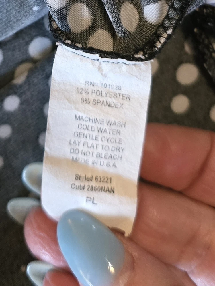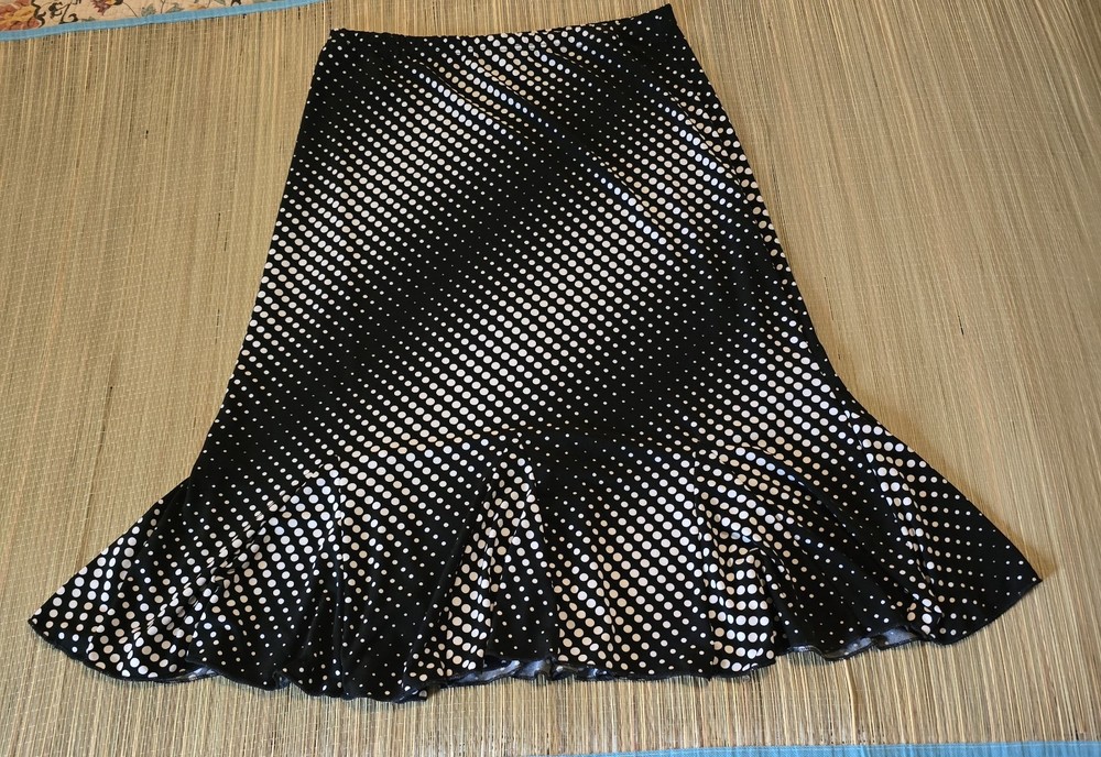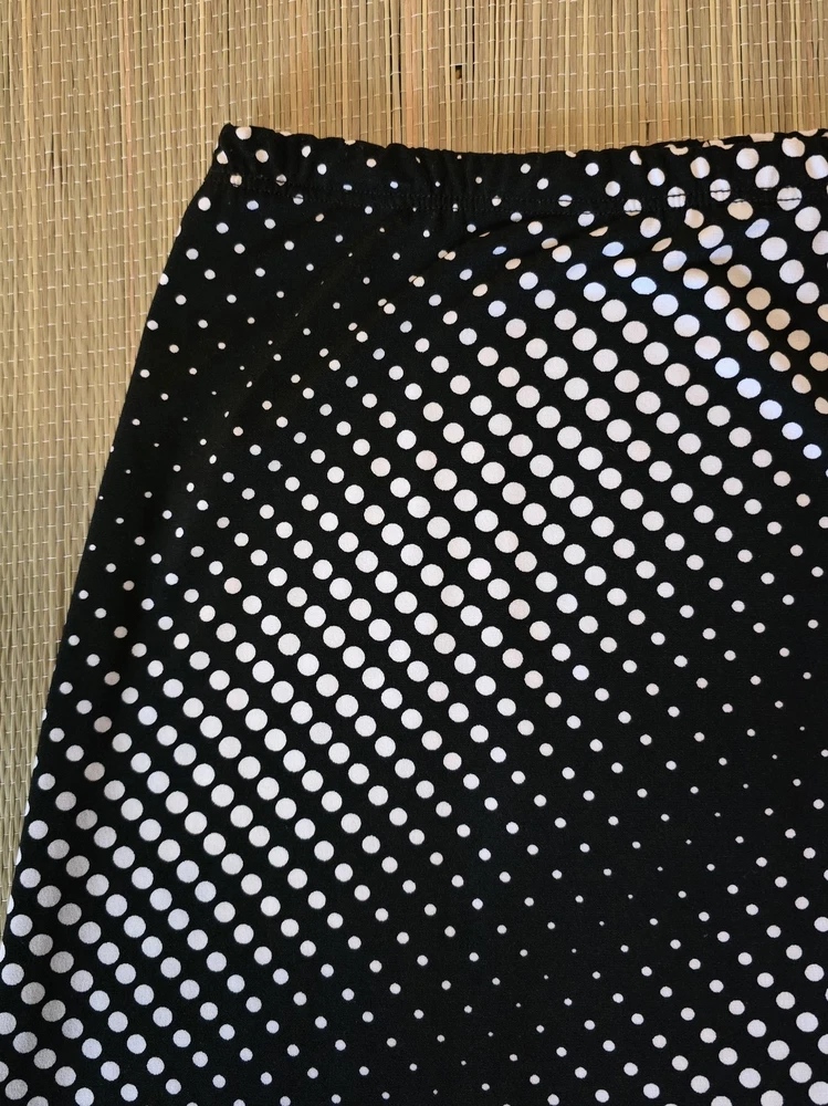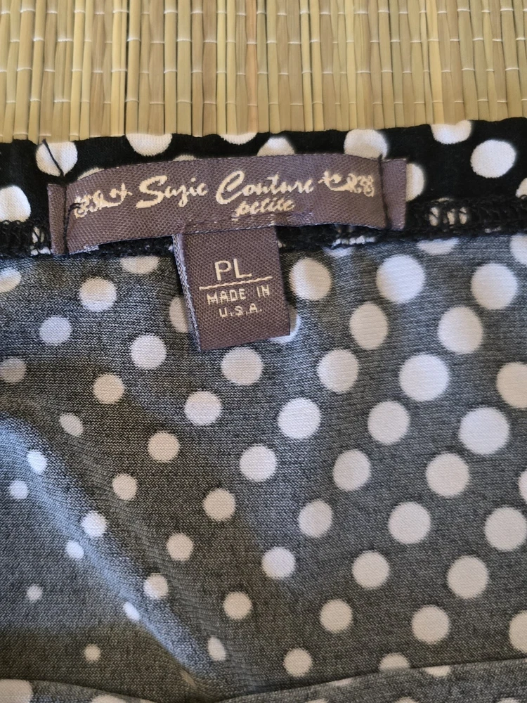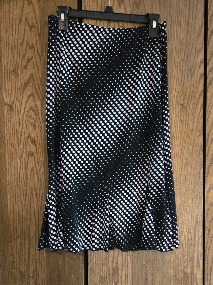 ❤️READ MEASUREMENTS FOR FIT ❤️ Suzie Couture Petites Pull-on A-Line Skirt Women's PL Pre-owned EUC Very nice elastic Waist Pull-On Knee-length A-line Skirt in black with white dot pattern 92% Polyester 8% Spandex Machine Washable Laying flat skirt measures 14" from side to side at waist, 26" from waistband to hem, and 34" from side to side at widest part of hem ALL MEASUREMENTS ARE APPROXIMATE EXCELLENT Pre-owned Condition ❤️READ MEASUREMENTS FOR FIT ❤️