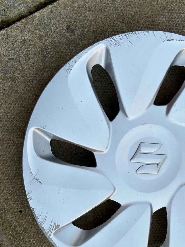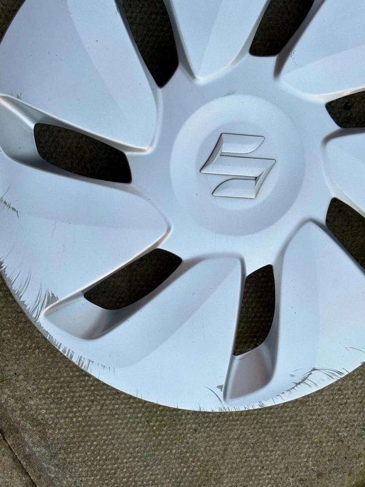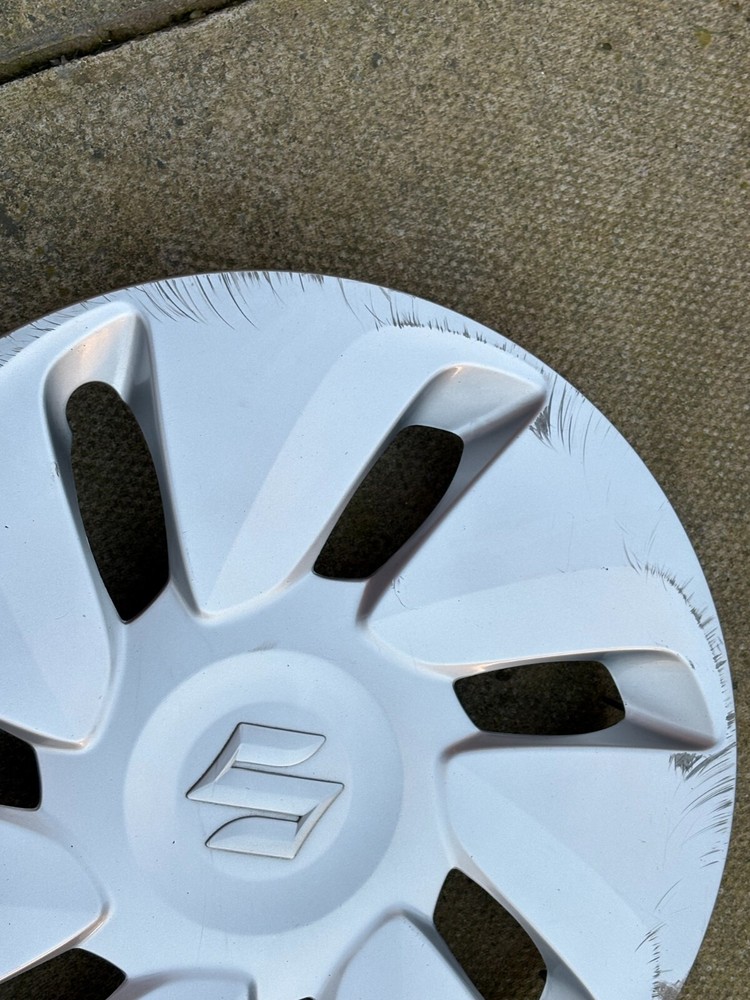 GENUINE 14'' SUZUKI WHEEL TRIM X 1 SOME WEE TAR SPOTS ODD TINY CHIP/SCRATCH FACE START OF ARMS ALL ARMS HAVE SCRAPES/SCRATCHES TOWARDS EDGE SCRAPES AROUND EDGE RETAINING RING AND LUGS (FITTINGS) ARE IN PLACE ANY QUESTIONS JUST ASK IS THIS THE RIGHT TRIM CHECK SIDEWALL OF YOUR TYRE EG 175X55 R14 THE R NUMBER GIVES YOU THE SIZE HAVE MORE IF NEEDED JUST ASK 3 PAYMENT OR CONTACT MUST BE MADE WITHIN 72 HOURS DUE TO TIME WASTERS THIS ITEM WILL BE SENT ROYAL MAIL 2ND CLASS. THEY WILL BE WELL WRAPPED AND SECURELY PACKAGED. POSTAGE IS TO MAINLAND UK AND NORTHERN IRELAND ONLY - PLEASE CONTACT ME FOR ALL OTHER AREAS INC CHANNEL ISLANDS AND SCOTTISH ISLANDS RETURNED ITEMS ARE AT BUYERS COST