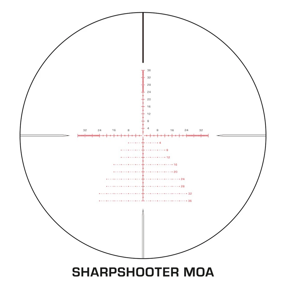 Maximum magnification is 6x higher than the minimum, giving you incredible flexibility. Kentucky Long takes everything we love about the Patriot series and adds red reticle illumination and locking, re-settable target turrets. The first focal plane Sharpshooter MOA pair with 0.25 MOA per-click adjustments. Includes includes high quality flip caps, 3" sun shade, and both low- and high-profile throw fins. • First focal plane (FFP) Sharpshooter etched reticle stays true at all magnifications. • MOA reticles paired with 0.25 MOA clicks Outstanding eye box for ease of use. • Outstanding eye box for ease of use even at high magnifications. • 11 red reticle illumination settings. • Push/Pull locking, Zero-resettable turrets.