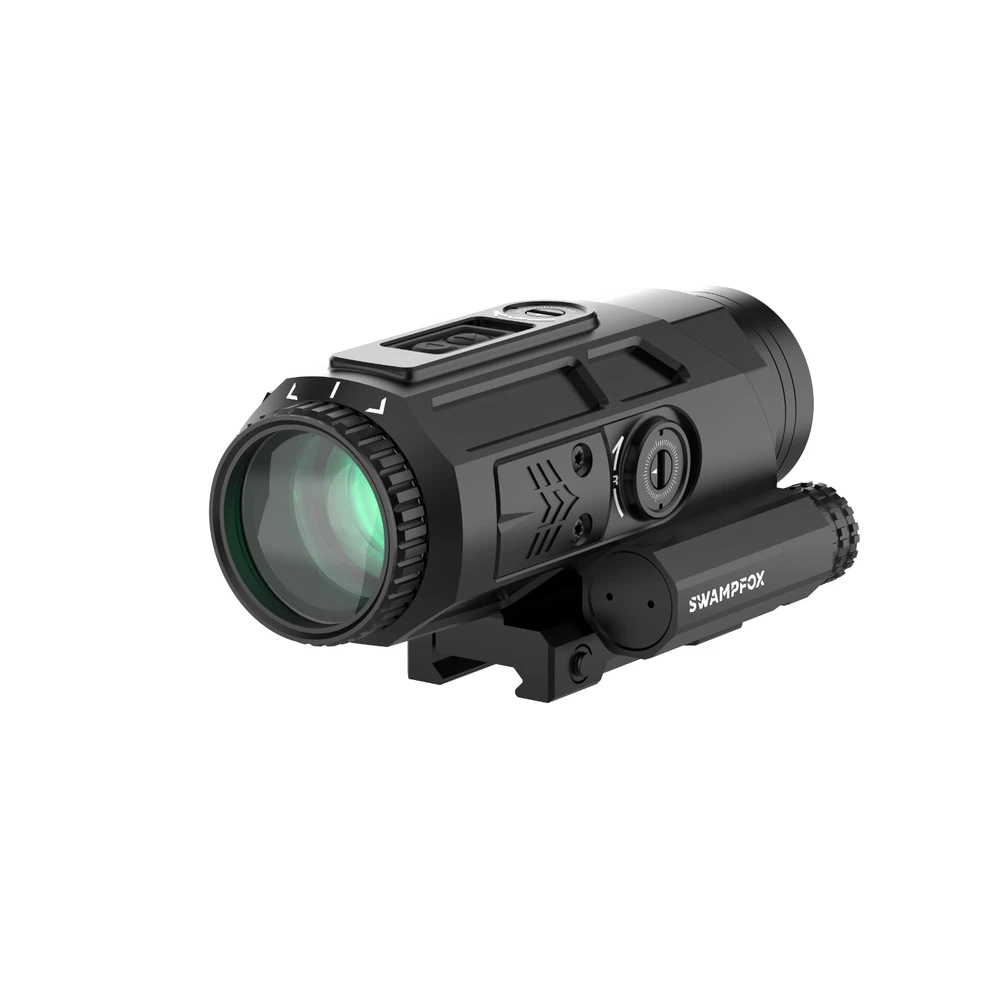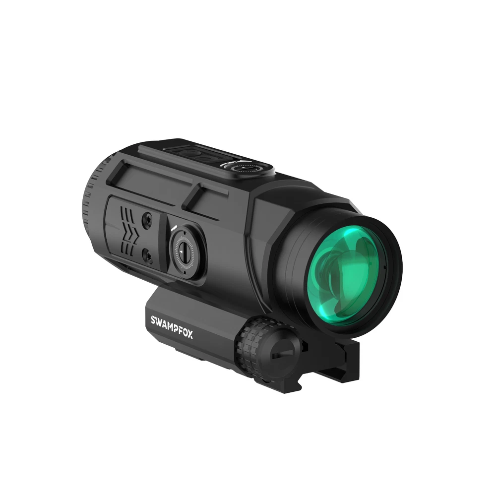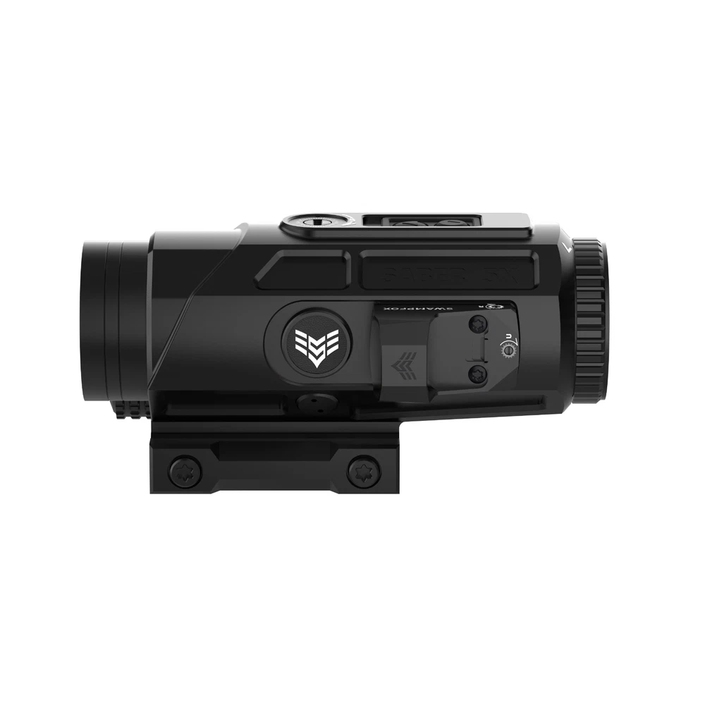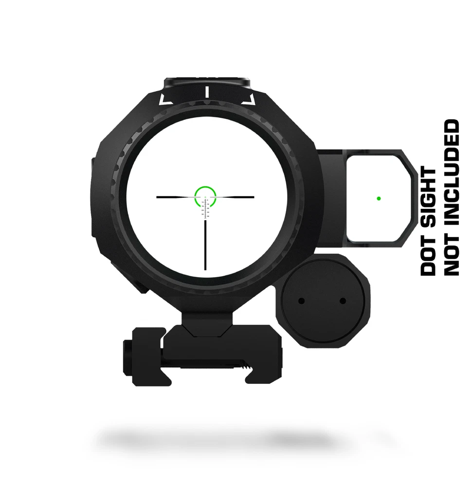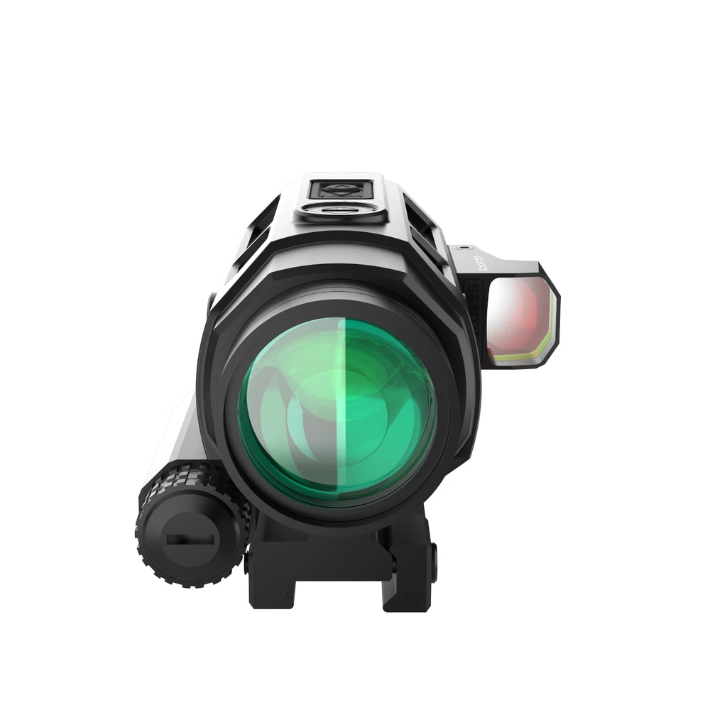 Saber is a 5x prism featuring the new ambidextrous 90-degree micro red dot mount giving the ability to rapidly transition from 1x to 5x. True ten-degree field of view returns providing the largest sight picture on the market. Choose from red or green illuminated “Shake ‘N Wake” etched Strike MOA reticle. The Saber combines legacy technology with cutting edge additions giving the shooter an ergonomic and uncompromised experience. A TRUE 5X PRISM-- Our 5x prism scopes offer great optical clarity and mid-distance precision in a simple, compact package – True 10 degree field of view (much greater lateral vision) from a 36 mm objective lens, meaning more targets are seen with faster follow on acquisition ADVANCED RETICLE -- Chemically etched Strike MOA reticle. Red or Green illumination offers a thick illuminated ring drawing your eye to the center for fast snap action and a 42 MOA vertical hold ladder. Even works (black reticle) if the battery dies EXTREME BATTERY LIFE—NO CR 2032 here (235 mah). Saber combines a proven Shake ‘N Wake system with a CR 123a battery (1550 mah) for up to 6 times the illumination life. Reticle illumination shuts off after 225 seconds without motion – Instant return with motion BUILT IN MOUNTS—Built in main 1913 MIL STD Picatanny base only uses 7 slots -- AND no need for extra 90° or 45° offset mounts. SABER has built in dual (ambi) SIDECAR 90° Sentinel mounts. 30° roll enables superfast transition from 5x (mid distance) to 1x CQB LIGHT—All this an weighs less than most LPVO’s