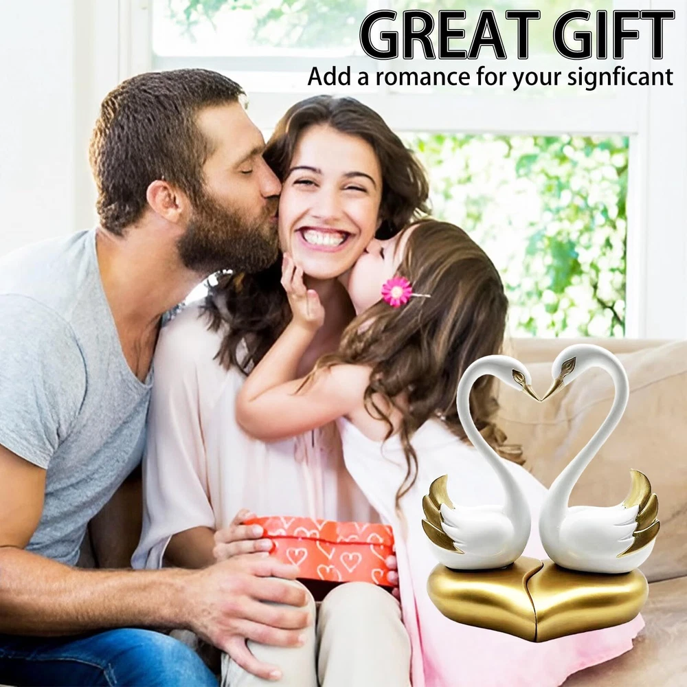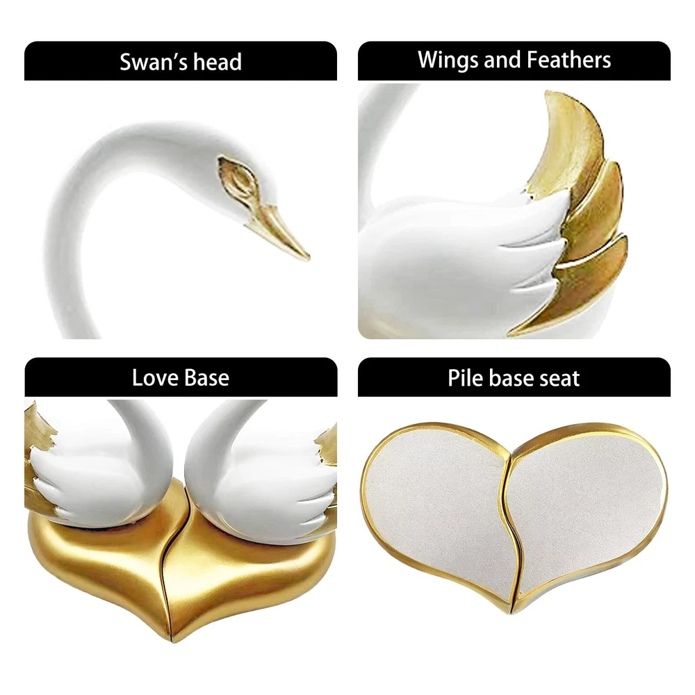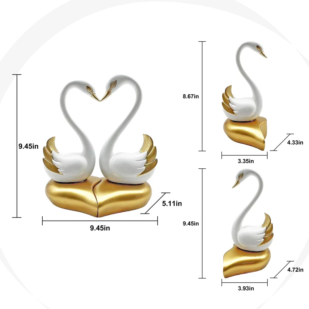 【Couple Swan statue size】:The total dimensions of this swan art Deco sculpture are 9.5 inches long by 5.1 inches wide by 9.5 inches high. The whole body is made of resin sculpture and hand-painted by hand.There are two colors: black and white. 【Romantic Couple decoration】: This modern couple sculpture, symbolizing the beauty and permanence of love, is carved and vividly colored according to the swan's molding details to bring the feathers to life and create a charming tabletop decoration for your home. Their presence evokes happiness, romance and joy, making them the perfect symbol of an expression of love. 【Unique art shelf decoration】: This modern swan statue of a couple of statues can be used to decorate bookshelves, coffee tables, TV stands, center tables, side tables, nightstands, sofa tables, end tables, mantelpieces, collection cabinets, wine cabinets, etc. As decorative items. 【suitable for home decor style】: Whether placed in the corner of a room, desk, bedroom, living room, family room, interior space, this modern ornament adds a touch of elegance and charm to any environment. 【Perfect Swan Home Decor Gift】:This sculpture of a swan couple is the gift of choice for housewarming parties, weddings, anniversaries, Valentine's Day, birthdays, Mother's Day, Christmas.