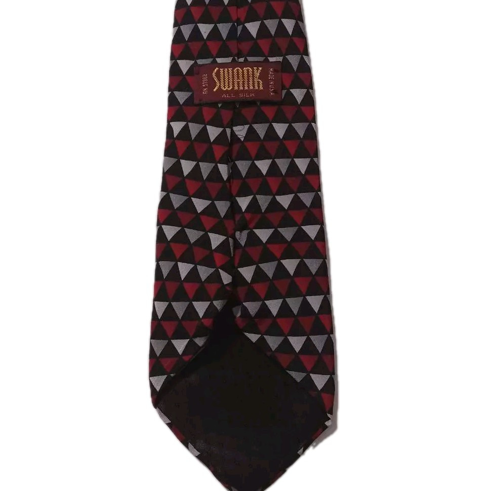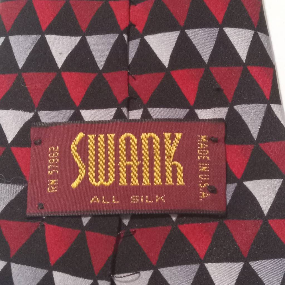 Vintage Swank Mens Tie Necktie Red Black Geometric 100% Silk Tied Classic US 57" 57" length Brand: Swank Style: Tie Necktie Color: Red Secondary Color: Black Material: 100% Silk Attachment: Tied Length: Classic (57 In.-60 In.) Sold as pictured. Thanks for looking! This listing was easily created using the SellHound Posting App! Thanks again for checking out our store.