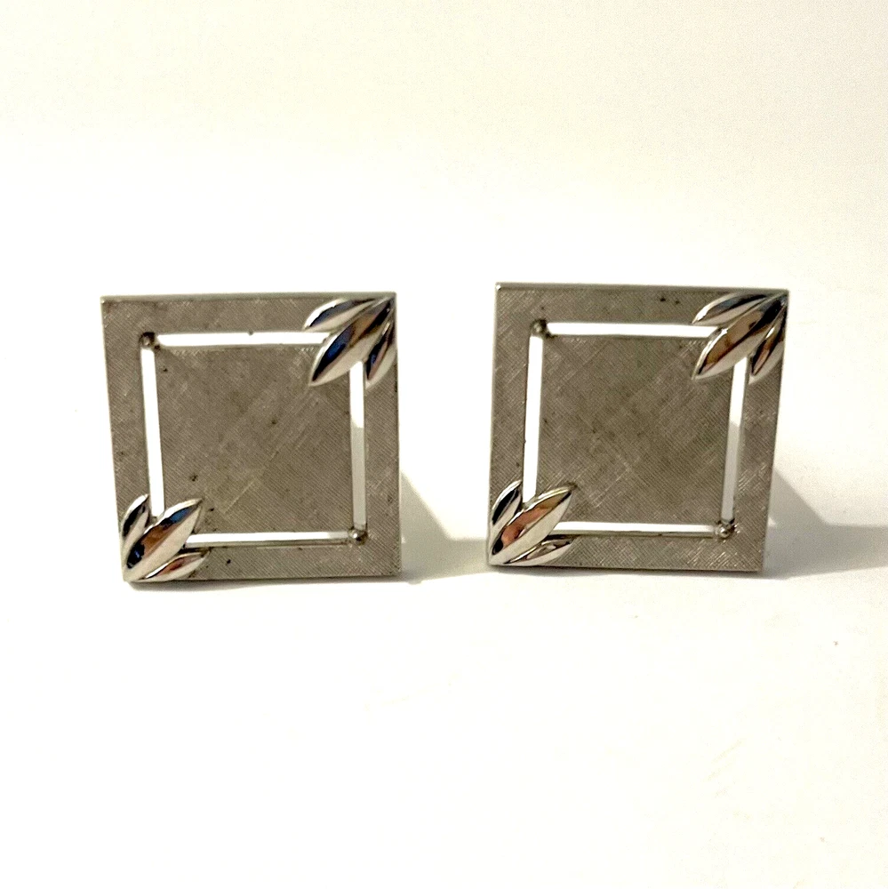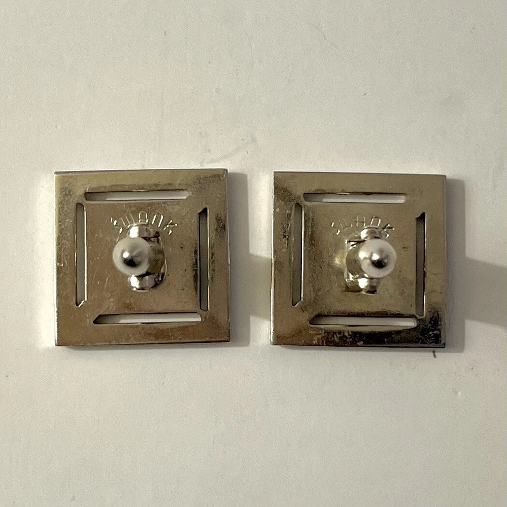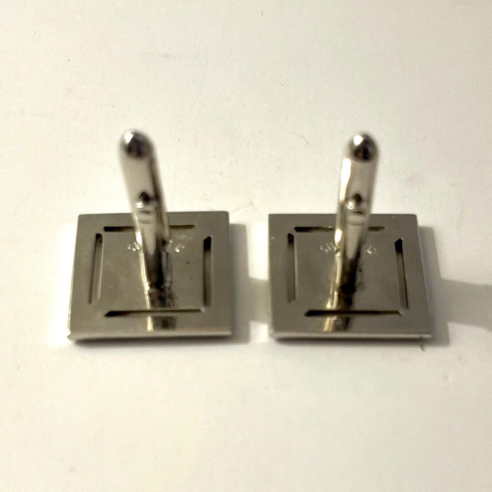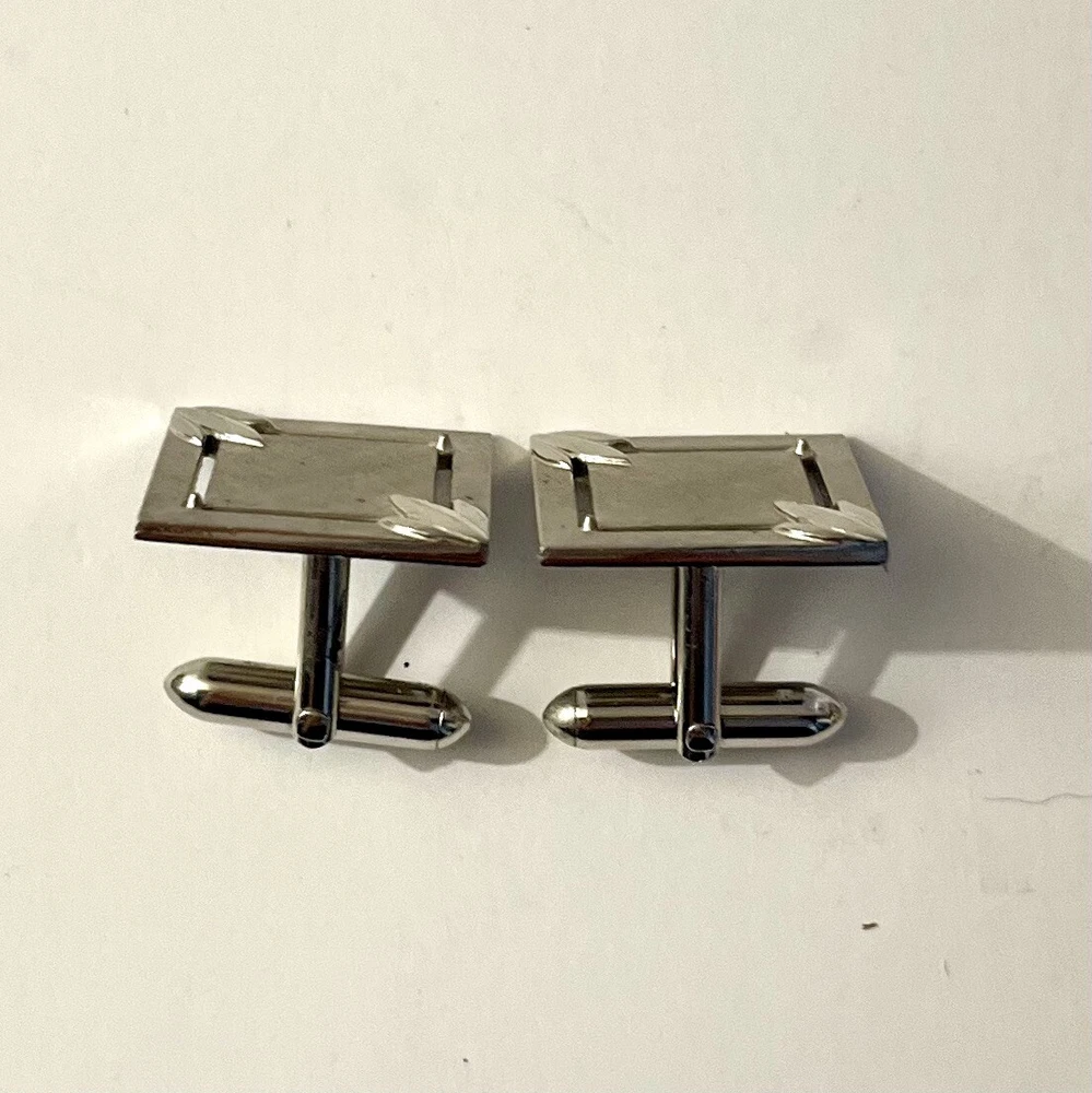 These vintage Swank cufflinks are a classic addition to any man's accessory collection. Made of durable stainless steel with a sleek silver tone, they feature a bullet back style for easy wear and signed for authenticity. These cufflinks are 3/4 inches in length and handcrafted in the United States. Perfect for a personalized touch, they can be a great gift for any man who appreciates timeless elegance. Size: 3/4” Condition: Great pre-owned, vintage condition.