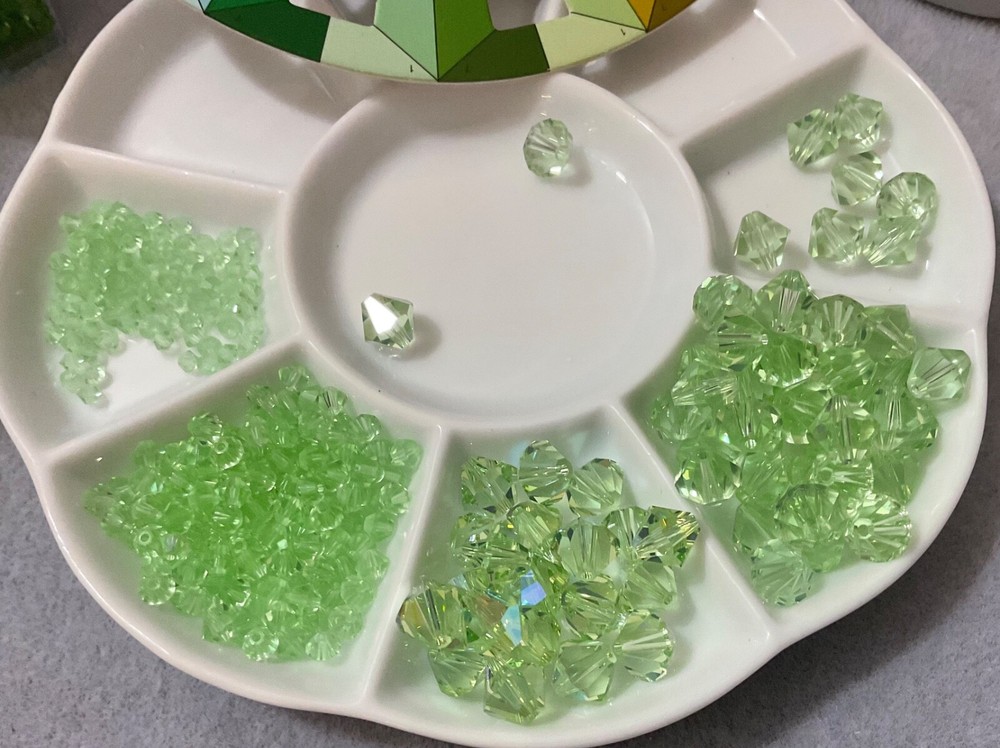 Curated Swarovski Chrysolite Lot is perfect for inspiration, gift giving, creativity in unique designs with limited beads, and selling designs at higher price points. Swarovski Crystal 5301 Transparent Bead LOT in Chrysolite & AB Chrysolite Too, this bead lot comes in Various sizes of Flip Top Tube containers. In this economy, the very activities that give us pleasure are what we give up first to save money; however, studies show as well as my bead/craft suppliers that a recession and bad economies are their most profitable. They’re not exactly sure what this is an economic indicator of, but recession after recession has proven to be very profitable for their bottom line. And many of those indulging their craftsmanship during these times seem to come out the other end with a skill they can monetize. My Swarovski Crystal & Czech Glass Bead Lot Collections, offer quite the savings; offering various beads and crystal sizes in one bead lot with postage savings alone, especially as postage continues its meteoric rise, is a huge financial savings with no need to compromise on the quality of their beading supplies. Bead Lot includes what's listed/pictured and Flip Top Tube packaging: 3mm 5301 Chrysolite 4mm 5301 Chrysolite 8mm 5301 AB Chrysolite 8mm 5301 Chrysolite All of the Swarovski I'm listing are either Vintage or manufactured before or around (Circa) the year I have indicated. After the final clean-out of a storage unit it was clear that Swarovski Crystals, that were put away years ago, finally decided to reveal their location and there is a boatload. As most jewelry designers, bead artists and crafter's know, Swarovski no longer just sells to smaller, unauthorized, contract-bound, resellers. After trying to find information about the treasured Swarovski uncovered I tried to just get some basic information so that I can get accurate descriptions, price ranges and the like; only to realize that the Swarovski colors, finishes that I have in my possession are no longer made-I do have access to all of their new designs and colors which is what I was trying to use to gather information; and although their new colors, and designs are AMAZING, there is very, very, little left to reference any previously produced Swarovski. With all that being said, I'm doing my best to identify colors from the terribly faded packaging and I'm just putting similar colors together and selling as Swarovski Bead Lots, pictures are the best but the quality is clearly Swarovski.