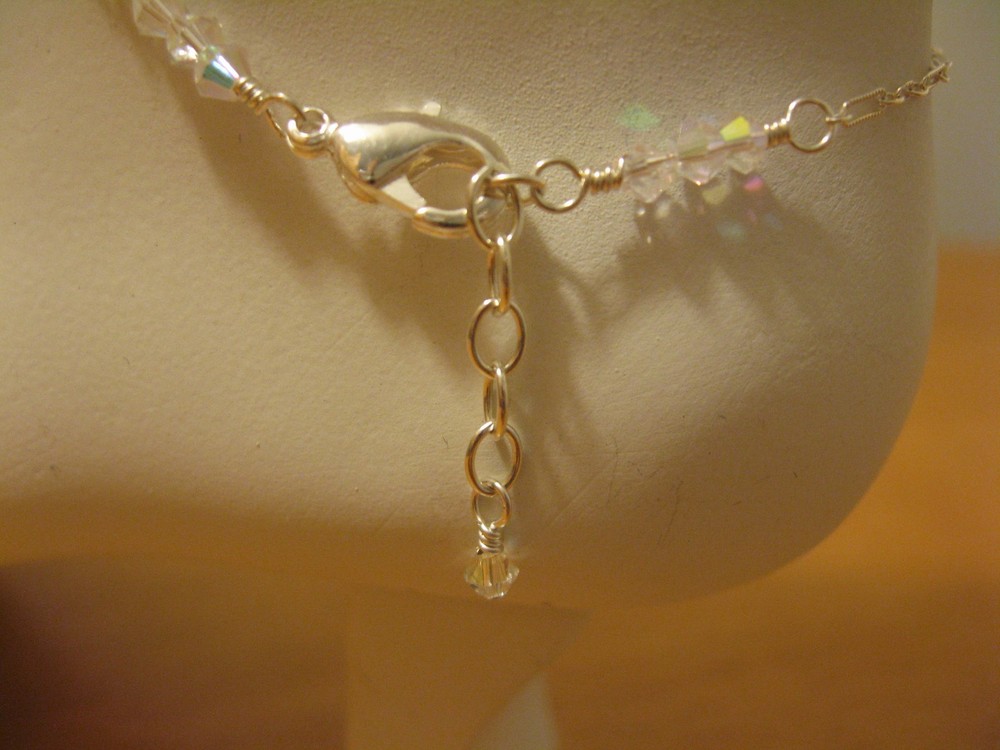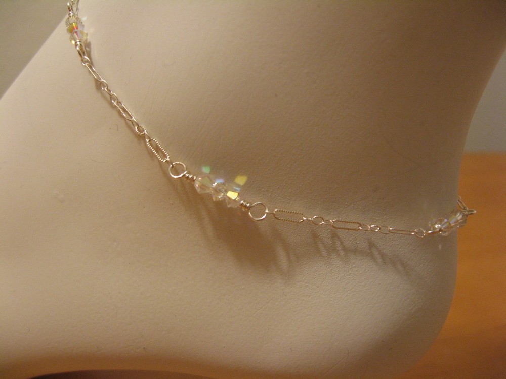 Excellent ebay service. Anklet was quailty made.Thank you once again! Buyer:Member id robindbaca ~Swarovski Clear AB Crystal ANKLET on Sterling SILVER NEW! LIMITED SUPPLY OF THIS COLOR! GORGEOUS SPARKLY COLOR ~ GOES WITH EVERYTHING! SWAROVSKI NO LONGER MAKES CRYSTALS SO DON'T MISS OUT! ALL SALES ARE FINAL. READ REVIEWS! THIS YEAR ROUND ANKLET is handmade with genuine Swarovski 3mm Clear AB iridescent diamond shape crystals in groups of 3 that go around the ankle with sterling silver decorative chain in between including the sturdy silver plated lobster claw clasp. **Read Reviews Below! Measures 11 inches total length but is adjustable down to 9 1/2". inches. Also comes in a smaller size in a separate listing. MATCHES ANY COLOR or SKIN TONE! PERFECT FOR ANYONE! Lightweight, Unique, Feminine & Comfortable ~ THE PHOTO DOESN'T DO IT JUSTICE! ALSO DOUBLES UP BEAUTIFULLY WITH ANY OTHER ANKLETS. These retail for $28! Please check out my many other anklets in crystal and semi-precious gemstones and my additional auction items. Shipping fees reflect postage, paper, ink, tape, bubble mailer, bubble, wrap and gas to the post office. Always buy with confidence, check my feedback for assurance. ALL MY ANKLETS WIL L C OME IN A PRETTY ORGANZA POUCH!! ***PLEASE READ RETURN POLICY BEFORE PURCHASE. THANKS! Excellent ebay service.Anklet was quailty made.Thank you once again! Buyer:Member id robindbaca During past 6 months Swarovski Clear AB Crystal ANKLET on Sterling SILVER NEW! SALE!! GORGEOUS! L@@K! VERY HAPPY! WILL BE BUYING FROM SELLER AGAIN!!!! Truly a great buy, sooo happy Buyer: Member id mamsmyth During past 6 months Swarovski Clear AB Crystal ANKLET on Sterling SILVER NEW! SALE!! GORGEOUS! L@@K! (#40128