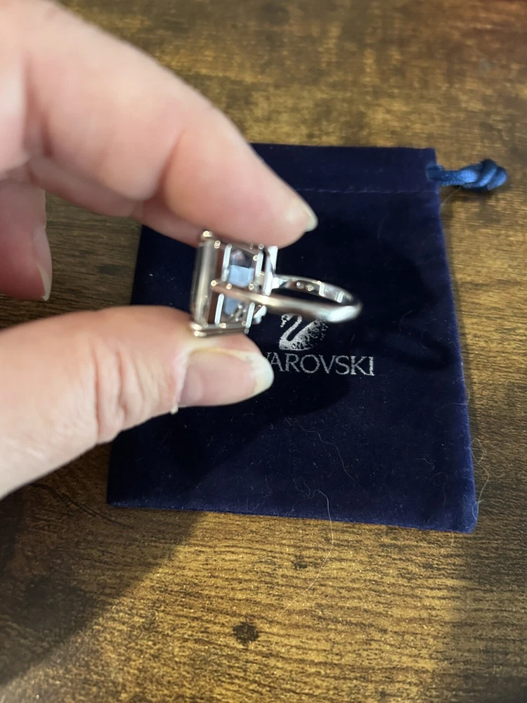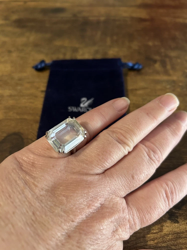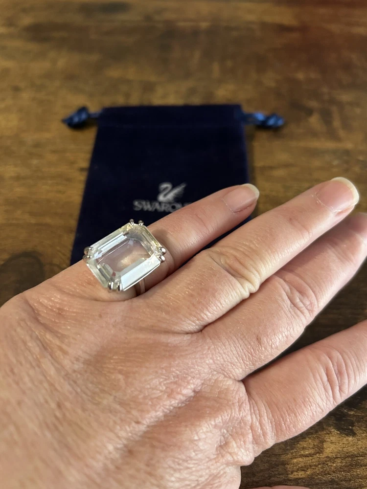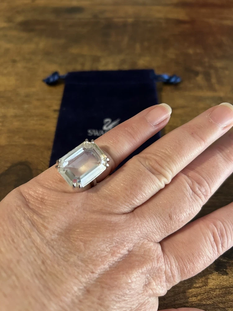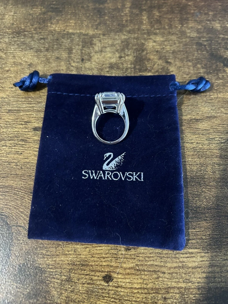 Antique: No Occasion: Anniversary, Birthday, Christmas, Engagement, Father's Day, Graduation, Mother's Day, Valentine's Day, Wedding Material: Crystal Style: Cocktail, Statement Type: Ring Country of Origin: Austria Main Stone: Crystal Features: Mesmera Collection Metal: Rhodium Plated Brand: Swarovski Main Stone Shape: Rectangle Handmade: No Vintage: No Wholesale: No Signed: Yes Main Stone Colour: White/Colourless Shape: Rectangle Number of Gemstones: 1 Country/Region of Manufacture: Austria Colour: Silver Ring Size: L