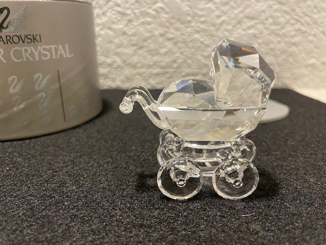 Swarovski Crystal Figurines - BABY CARRIAGE #7473NR000005 This figurine is in excellent condition. It is from my private collection, has never been display, just kept in a cool, dry environment and in a smoke free home. It has been kept in the original box and packaging, never displayed, box opened only for pictures. Please look at all photos and read the full description. Please e-mail me through eBay if you have a question prior to purchasing. I make every effort to accurately describe each item I list for sale, but am always glad to answer questions to the best of my knowledge. Please pay within three days of making a purchase. I carefully pack and ship within the same day or next day(Monday-Friday) following receipt of funds in my account. All Sales are final. Upon receipt of your order, please contact me if there is a problem. If you have any kind of issue or question about your purchase, please contact me through eBay messaging. If damage occurs during shipping, please keep all packing and shipping materials and contact me. Please photograph any item that is damaged in transit as well as the shipping materials. The carrier will require proof of loss if a claim must be filed for the damage. Do not return damaged items to me. Please view other items I have for sale. Thank you very much for your interest.