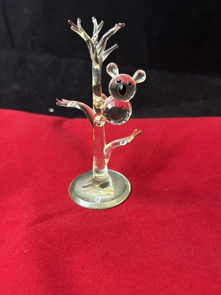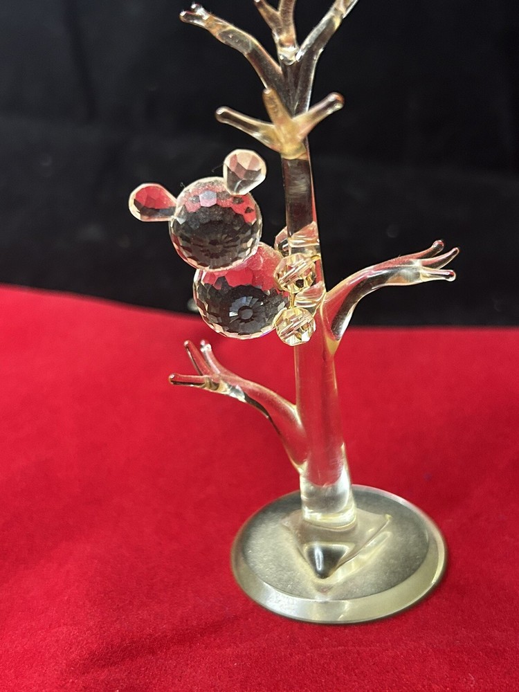 This Swarovski crystal bear figurine is a beautiful addition to any collection. Made with high-quality materials and featuring intricate crystal details, this piece is sure to catch the eye of any collector. The bear is depicted climbing a tree, adding a touch of whimsy to the sculpture. Perfect for those who love animals or decorative items, this figurine is a must-have for any Swarovski fan.