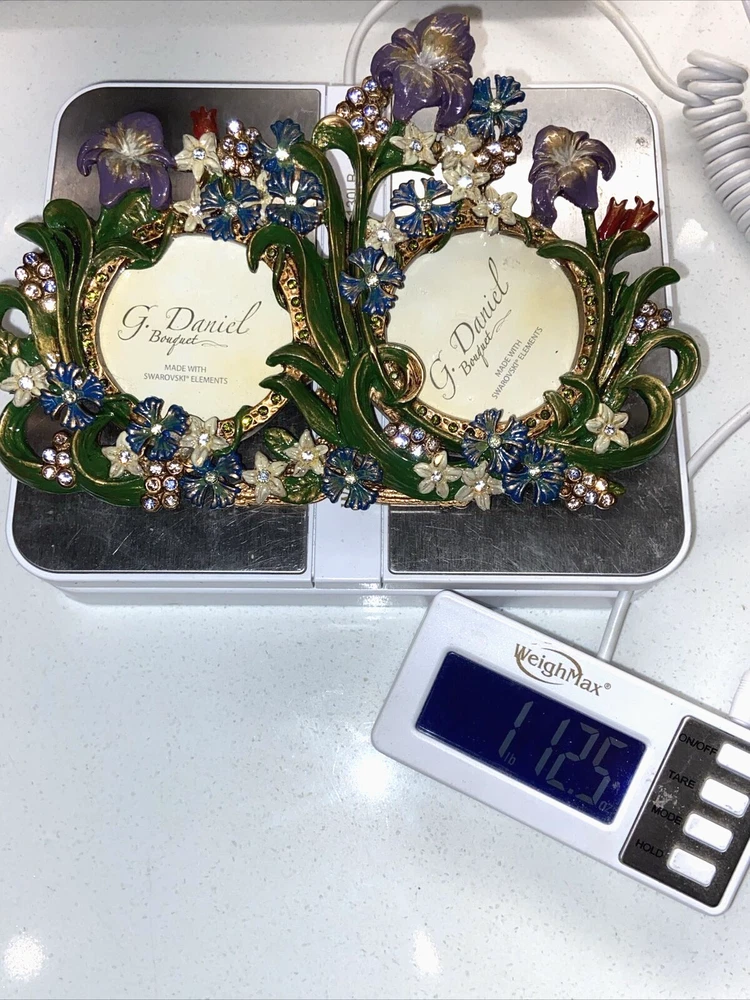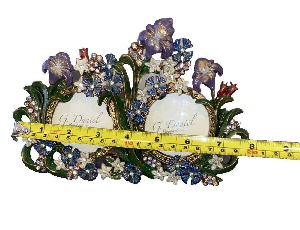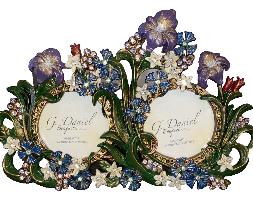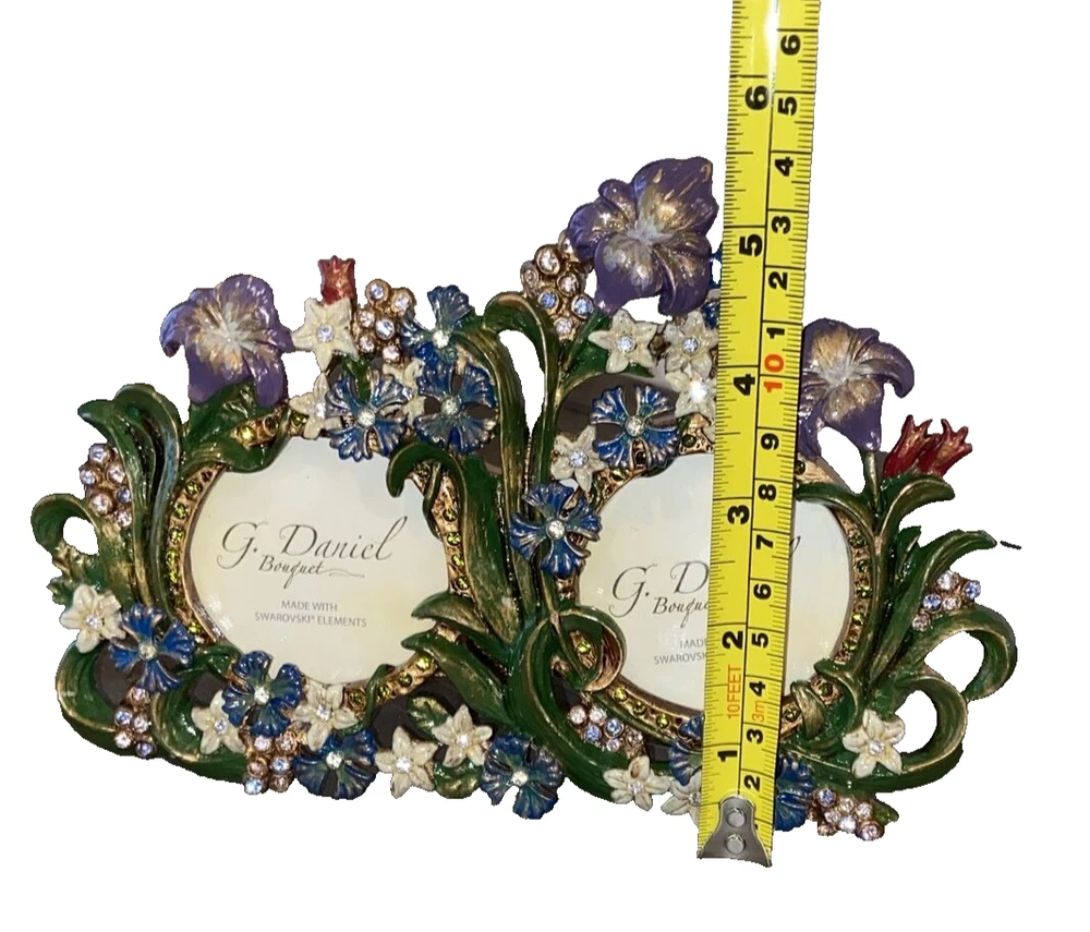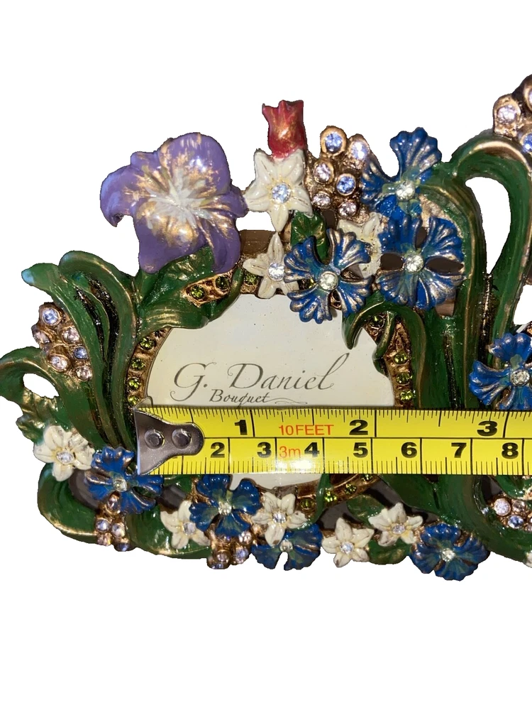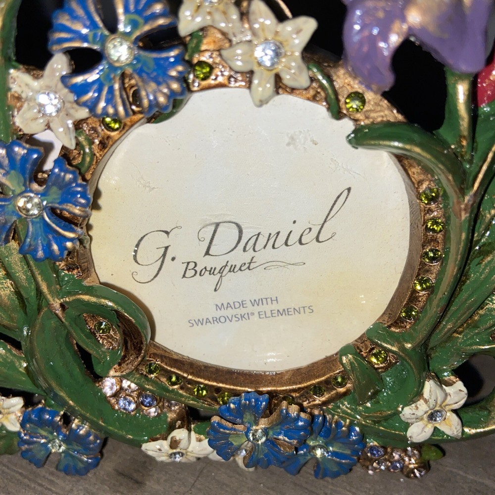 SWAROVSKI CRYSTALS ELEMENT G. DANIEL BOUQUET Handmade Metal Photo Frame Please refer to photos for condition. Sold as pictured. Measurements are approximate provided either in the photos or in the description. Please compare the measurements with a similar item to ensure a happy transaction. Please note colors may vary on different monitors.