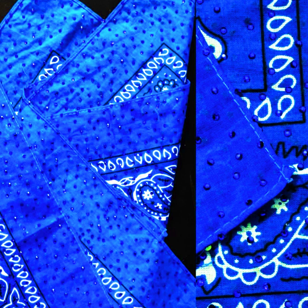 Introducing the exquisite Swarovski Drenched Bandanas, meticulously crafted to order just for you. Choose from an array of vibrant hues or charming prints, and if you don't see your desired color at checkout, simply opt for 'CUSTOM COLOR' and inform me of your preference. These luxurious, 100% cotton accessories are adorned with approximately 3,000 sparkling Swarovski crystals on both sides, creating a dazzling spectacle of opulence. Whether you wish to add a touch of glamour to your everyday attire or dazzle on stage before billions, these unisex bandanas are as versatile as they are enchanting. Suitable for both humans and pets, they serve as a whimsical fashion statement that transcends the ordinary. Each piece is a handcrafted masterpiece, with every crystal meticulously applied by skilled artisans. These bandanas are not merely accessories; they are wearable art that encapsulates the essence of the cosmos in a breathtaking display of brilliance. Ideal for any occasion, from a casual stroll to a glamorous evening affair, they are the epitome of magical allure and sophistication. Indulge in the luxury of being enveloped by a universe of sparkle with these exquisite, handcrafted pieces, tailored to your unique taste.