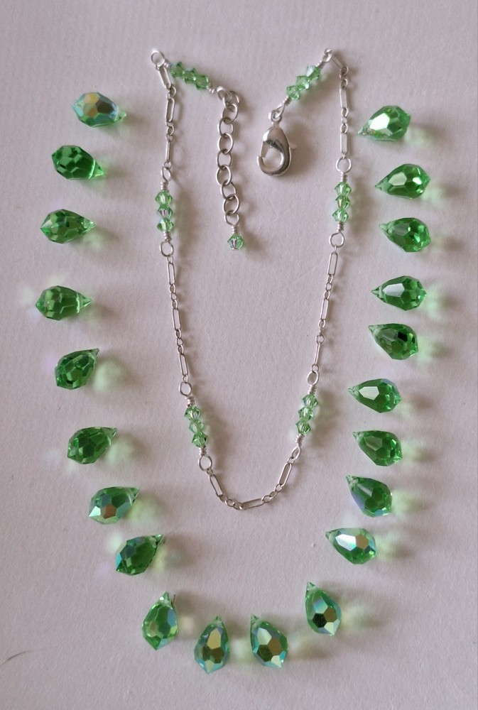 SALE!! PRETTYANKLET is handmade with Genuine Swarovski 3mm Peridot diamond shape crystals in groups of 3 that go around the ankle with sterling silver decorative chain in between and includes a sturdy silver plated lobster claw clasp. Measures 10 inches total length but is adjustable down to 9 inches. PERFECT FOR A BIRTHDAY, HOLIDAY GIFT, BRIDE OR BRIDAL PARTY TOO (I CAN MAKE MULTIPLES!) Lightweight, Unique, Feminine and Comfortable! BRAND NEW AND THE PHOTO DOESN'T DO IT JUSTICE! ALSO DOUBLES UP BEAUTIFULLY WITH ANY OTHER ANKLETS. These retail for $28! Please check out my many other anklets in crystal and semi-precious gemstones and my additional auction items. Shipping fees reflect postage, paper, ink, tape, bubble mailer, bubble, wrap and gas to the post office. Always buy with confidence, check my feedback for assurance. ALL MY ANKLETS WILL COME IN A PRETTY ORGANZA POUCH!! ***PLEASE READ RETURN POLICY BEFORE PURCHASE. THANKS!