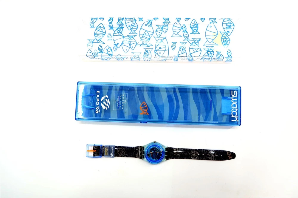 NEW Swatch Access Watch ADAMASTOR SKL100 Lisboa Expo w/ Case & Papers 1998 NOS This eBay listing is for a New Old Stock classic SWATCH WATCH that comes as you see pictured in the listing and noted above. This watch is brand new and never used before and comes with the original case and paperwork. If you collect classic Swatch Watches, then please check out my other listings in my ebay store for many more great Swatches!! I just picked up close to 800 NOS Swatches from a local auction where I'm told the consignor had one of the largest Swatch watch collection in the United States. This was their 3rd and final auction of Swatches. In total, I purchased close to 1500+ Swatches!! Many of the watches are Special Editions, Limited Editions, Boxed Sets, Scarce and rare models plus other vintage Swatches as well. I will remove all of the old Swatch batteries and will replaced them with brand new batteries to verify that they are all are all in good working condition unless noted below. Please note that vintage and retro Swatches are on the smaller size compared to modern style watches. Most standard Gents (mens) watches have a 33mm-34mm case. I will try to include a picture with each new listing showing the watch next to a standard ruler so that you can see the true size of this collectible Swatch watch. Swatch name : ADAMASTOR Model : SKL100 New Battery : Yes (due to age, the original battery was removed with a new battery installed) Features/Notes : Works Great! Circa 1998. Seller Location Reference - Box 50 BID IN CONFIDENCE – CHECK MY FEEDBACK! My goal is your satisfaction. I leave positive feedback right after the payment is received for all orders!! If you plan to leave anything less than positive feedback and 5 stars - please let me know so that I can work out any problems that you may have. I aim to please!! SHIPPING & HANDLING FOR US BIDDERS We ship ASAP upon payment as noted above within 1 business day 99% of the time!! We normally pack up your new treasures 2 - 3 times a day and ship using USPS and Fedex Ground so that you get your items in a timely fashion. As always - there is no charge for local pickup on any of my items!! SHIPPING AND HANDLING FOR INTERNATIONAL BIDDERS Import duties, taxes and charges are not included in the item price or shipping charges. These charges are the buyer’s responsibility. Please check with your country’s customs office to determine what these additional costs will be prior to bidding/buying.” THANK YOU AND HAVE A WONDERFUL DAY!! Powered by SixBit's eCommerce Solution