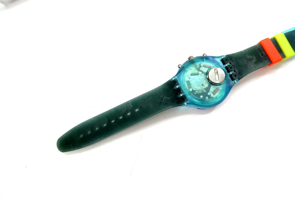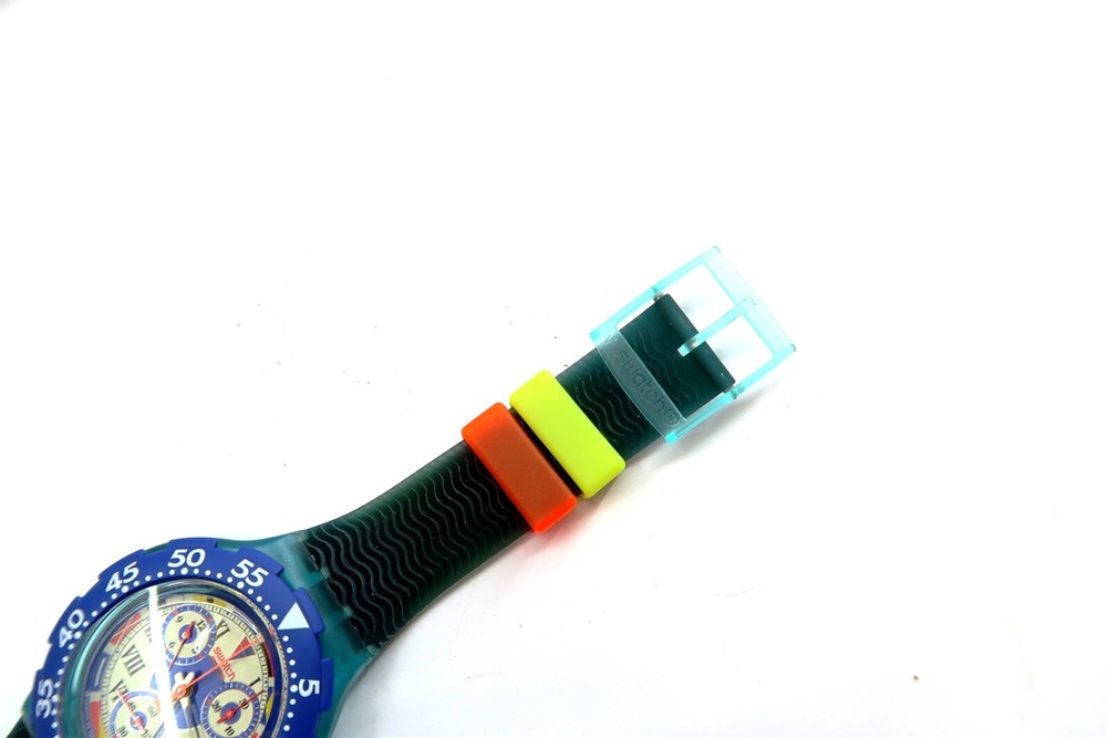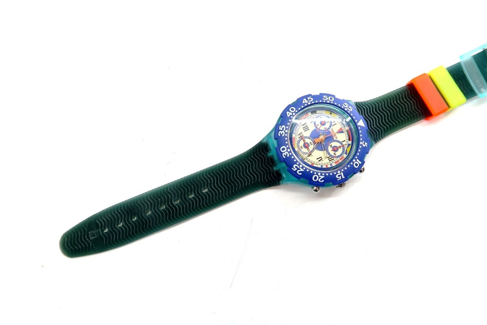 NEW Swatch AcuaChrono Watch BIG BLUE SBN101 w/ Case & Papers 1995 NOS Gents This eBay listing is for a New Old Stock classic SWATCH WATCH that comes as you see pictured in the listing and noted above. This watch is brand new and never used before and comes with the original case and paperwork. If you collect classic Swatch Watches, then please check out my other listings in my ebay store for many more great Swatches!! I just picked up close to 800 NOS Swatches from a local auction where I'm told the consignor had one of the largest Swatch watch collection in the United States. This was their 3rd and final auction of Swatches. In total, I purchased close to 1500+ Swatches!! Many of the watches are Special Editions, Limited Editions, Boxed Sets, Scarce and rare models plus other vintage Swatches as well. I will remove all of the old Swatch batteries and will replaced them with brand new batteries to verify that they are all are all in good working condition unless noted below. Please note that vintage and retro Swatches are on the smaller size compared to modern style watches. Most standard Gents (mens) watches have a 33mm-34mm case. I will try to include a picture with each new listing showing the watch next to a standard ruler so that you can see the true size of this collectible Swatch watch. Swatch name : BIG BLUE Model : SBN101 New Battery : Yes (due to age, the original battery was removed with a new battery installed) Features/Notes : Works Great! Circa 1994. Seller Location Reference - Box 64 BID IN CONFIDENCE – CHECK MY FEEDBACK! My goal is your satisfaction. I leave positive feedback right after the payment is received for all orders!! If you plan to leave anything less than positive feedback and 5 stars - please let me know so that I can work out any problems that you may have. I aim to please!! SHIPPING & HANDLING FOR US BIDDERS We ship ASAP upon payment as noted above within 1 business day 99% of the time!! We normally pack up your new treasures 2 - 3 times a day and ship using USPS and Fedex Ground so that you get your items in a timely fashion. As always - there is no charge for local pickup on any of my items!! SHIPPING AND HANDLING FOR INTERNATIONAL BIDDERS Import duties, taxes and charges are not included in the item price or shipping charges. These charges are the buyer’s responsibility. Please check with your country’s customs office to determine what these additional costs will be prior to bidding/buying.” THANK YOU AND HAVE A WONDERFUL DAY!! Powered by SixBit's eCommerce Solution