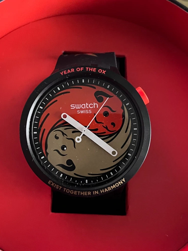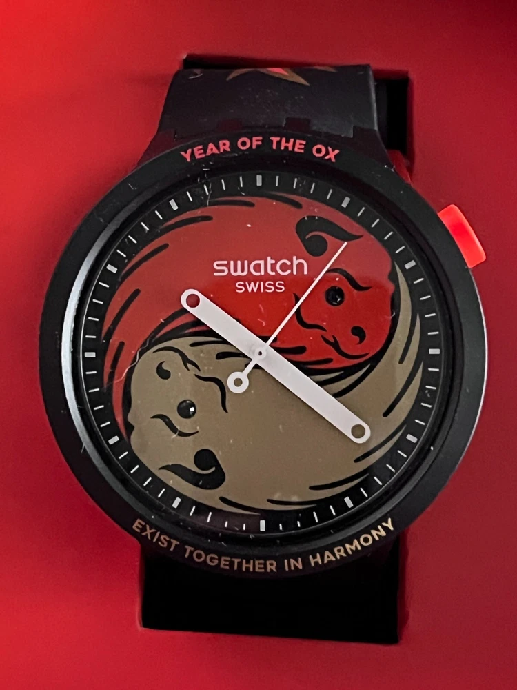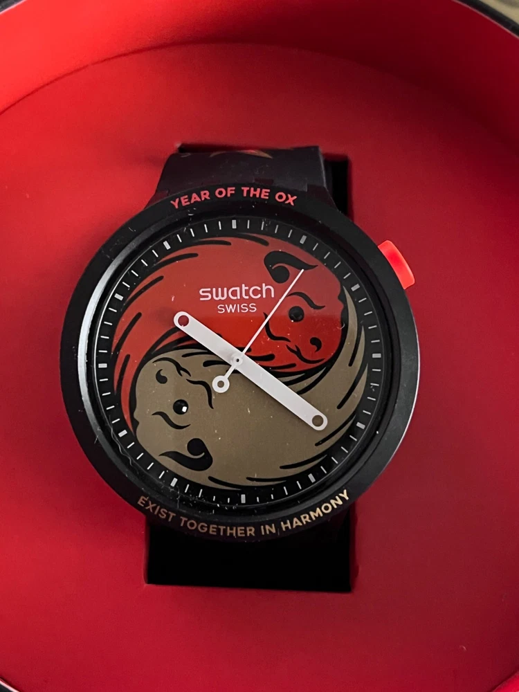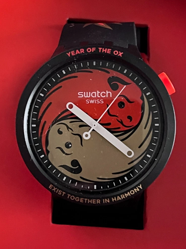 Type: Wristwatch Department: Unisex Adults Model: Swatch Chinese New Year Ox Movement: Quartz Brand: Swatch Features: Push/Pull Crown, Swiss Made, Water-Resistant